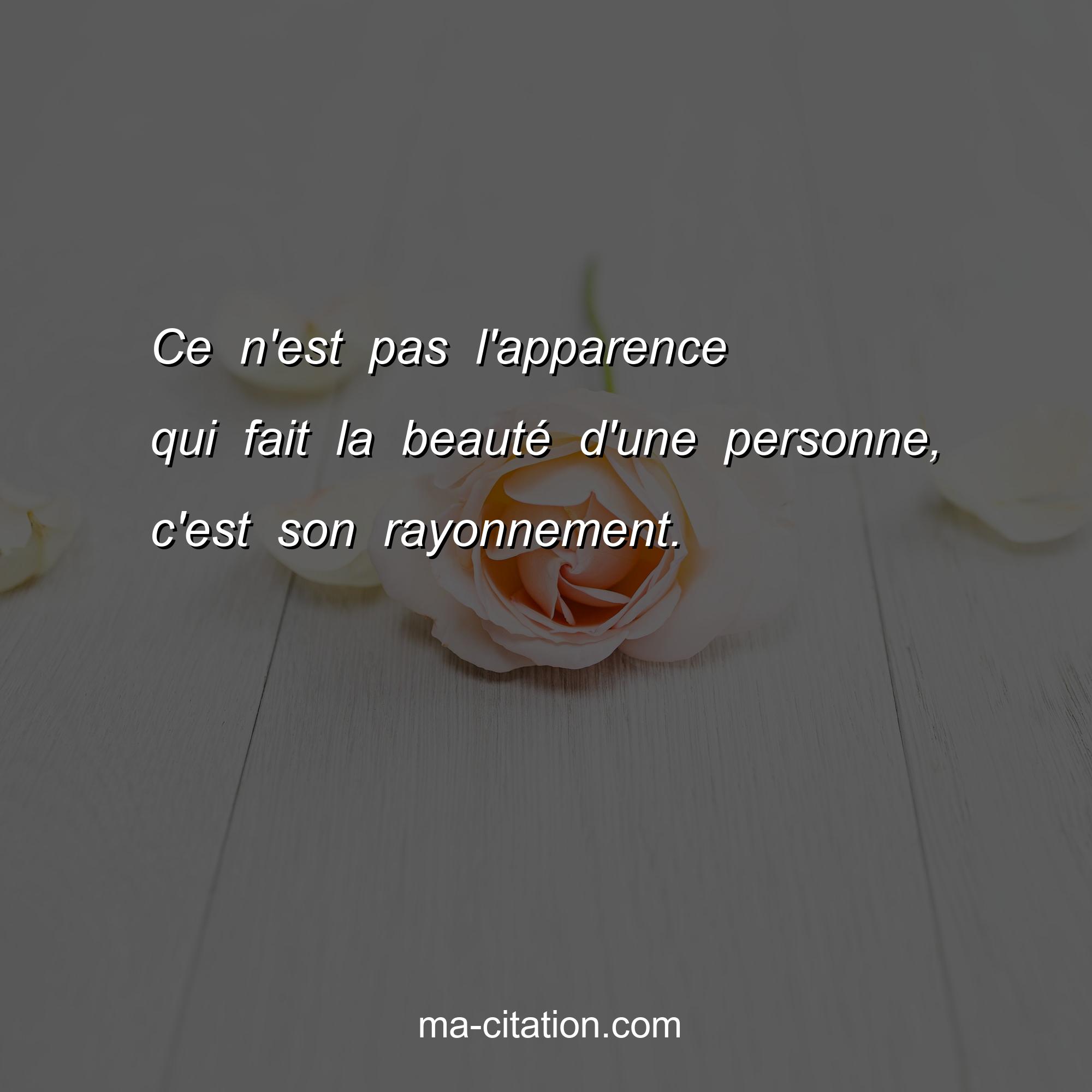 Ce n'est pas l'apparence qui fait la beauté d'une personne, c'est son rayonnement.