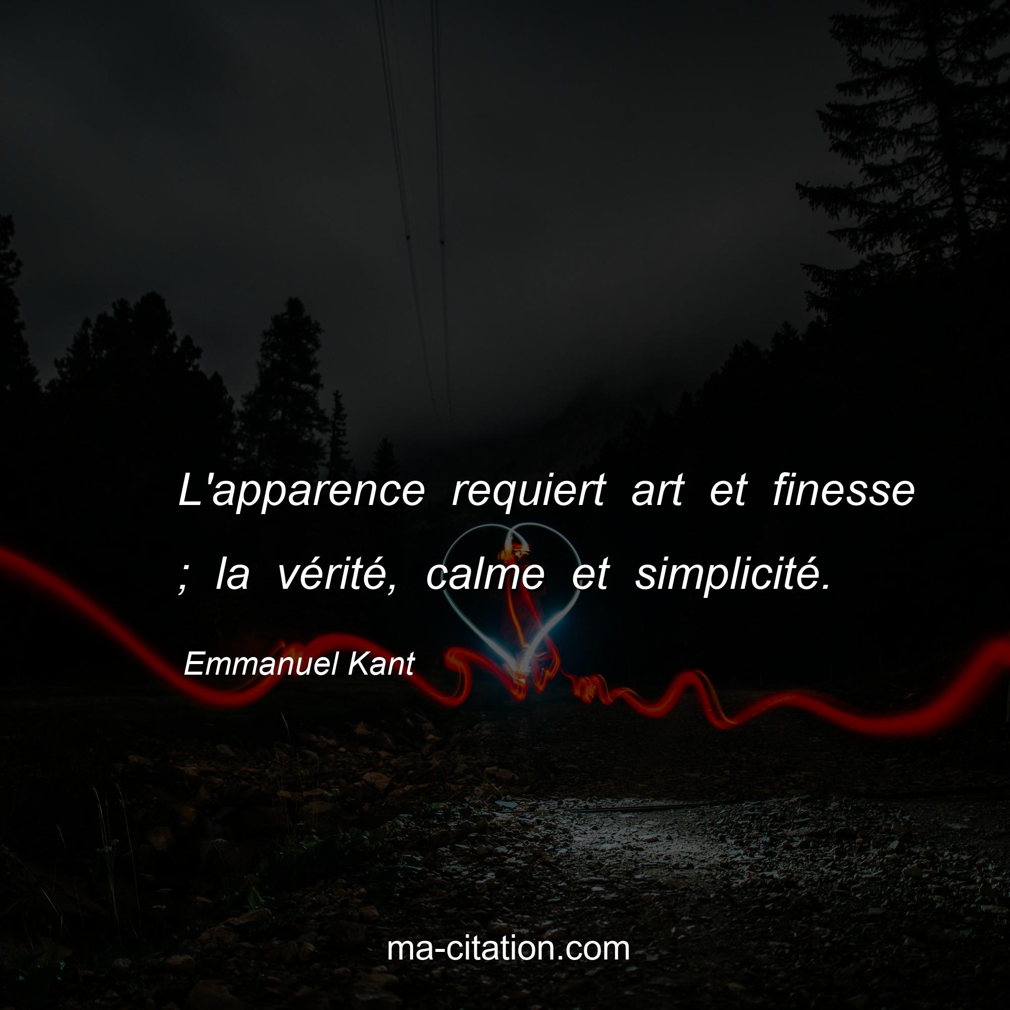 Citation sur la vie d'Emmanuel Kant :L'apparence requiert art et finesse ; la vérité, calme et simplicité.