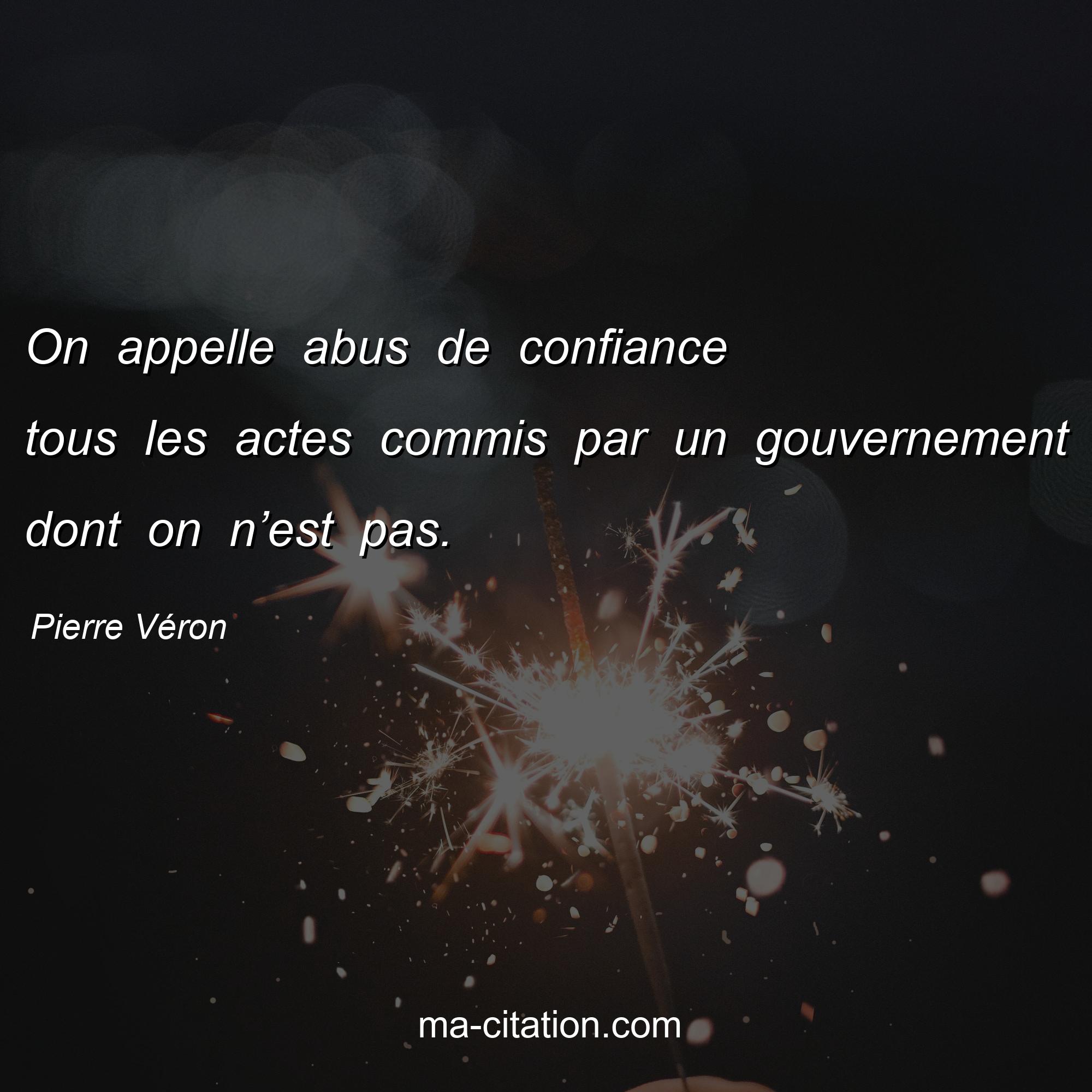 Citation sur la vie de Pierre Véron :On appelle abus de confiance tous les actes commis par un gouvernement dont on n’est pas.