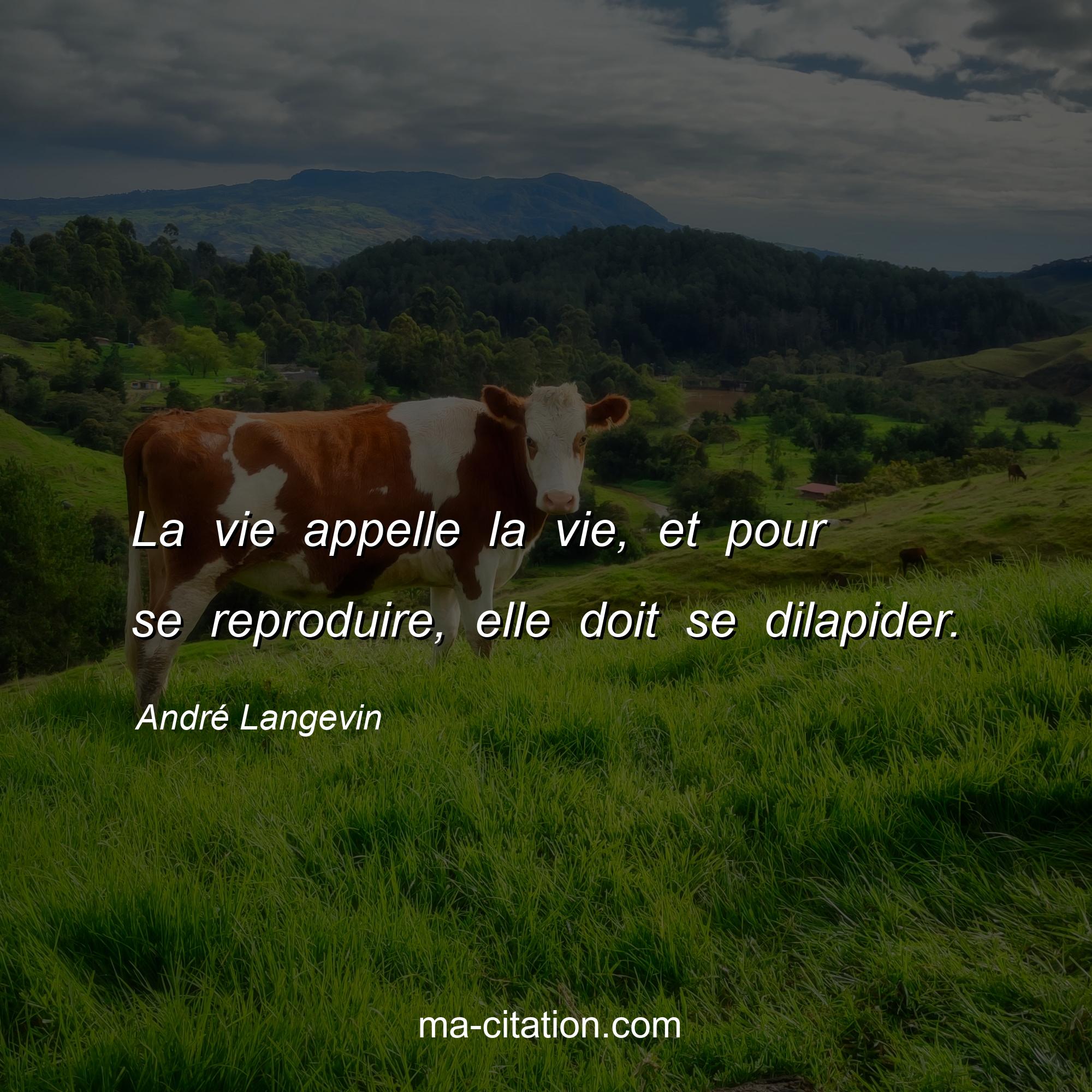 Citation sur la vie d'André Langevin :La vie appelle la vie, et pour se reproduire, elle doit se dilapider.