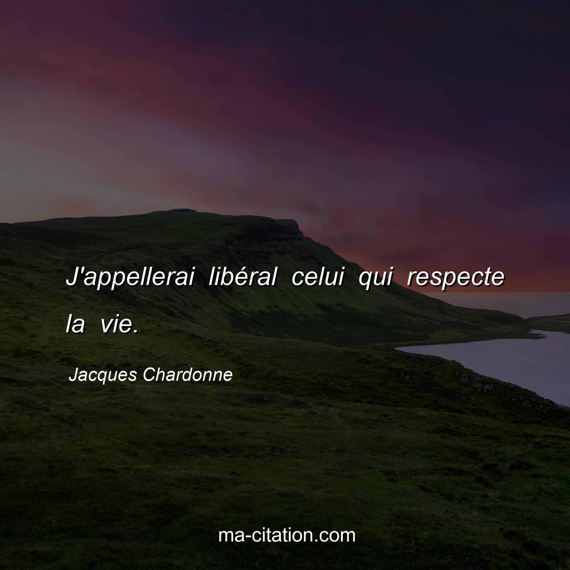 Citation sur la vie de Jacques Chardonne :J'appellerai libéral celui qui respecte la vie.