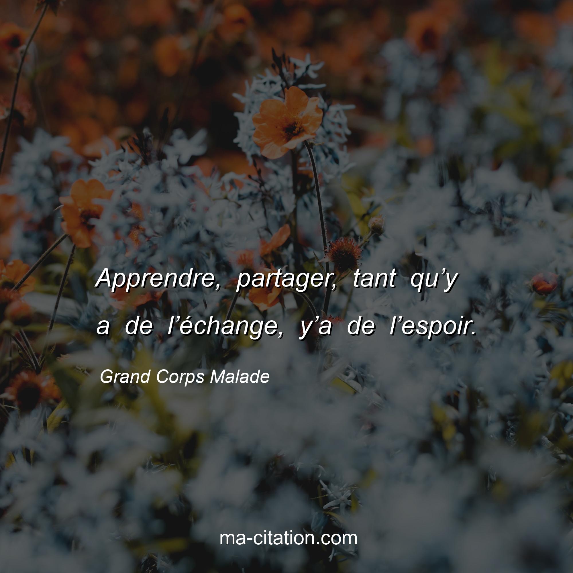 Grand Corps Malade est l'auteur de la citation sur la vie "Apprendre, partager, tant qu’y a de l’échange, y’a de l’espoir.".