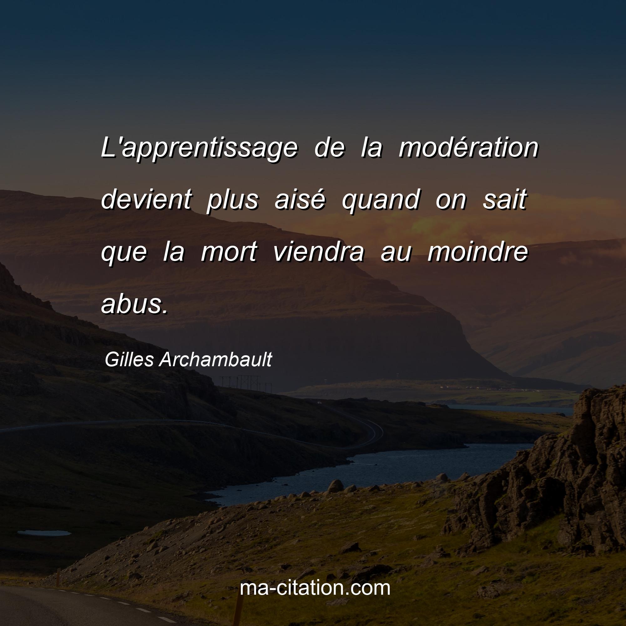 Gilles Archambault est l'auteur de la citation sur la vie "L'apprentissage de la modération devient plus aisé quand on sait que la mort viendra au moindre abus.".
