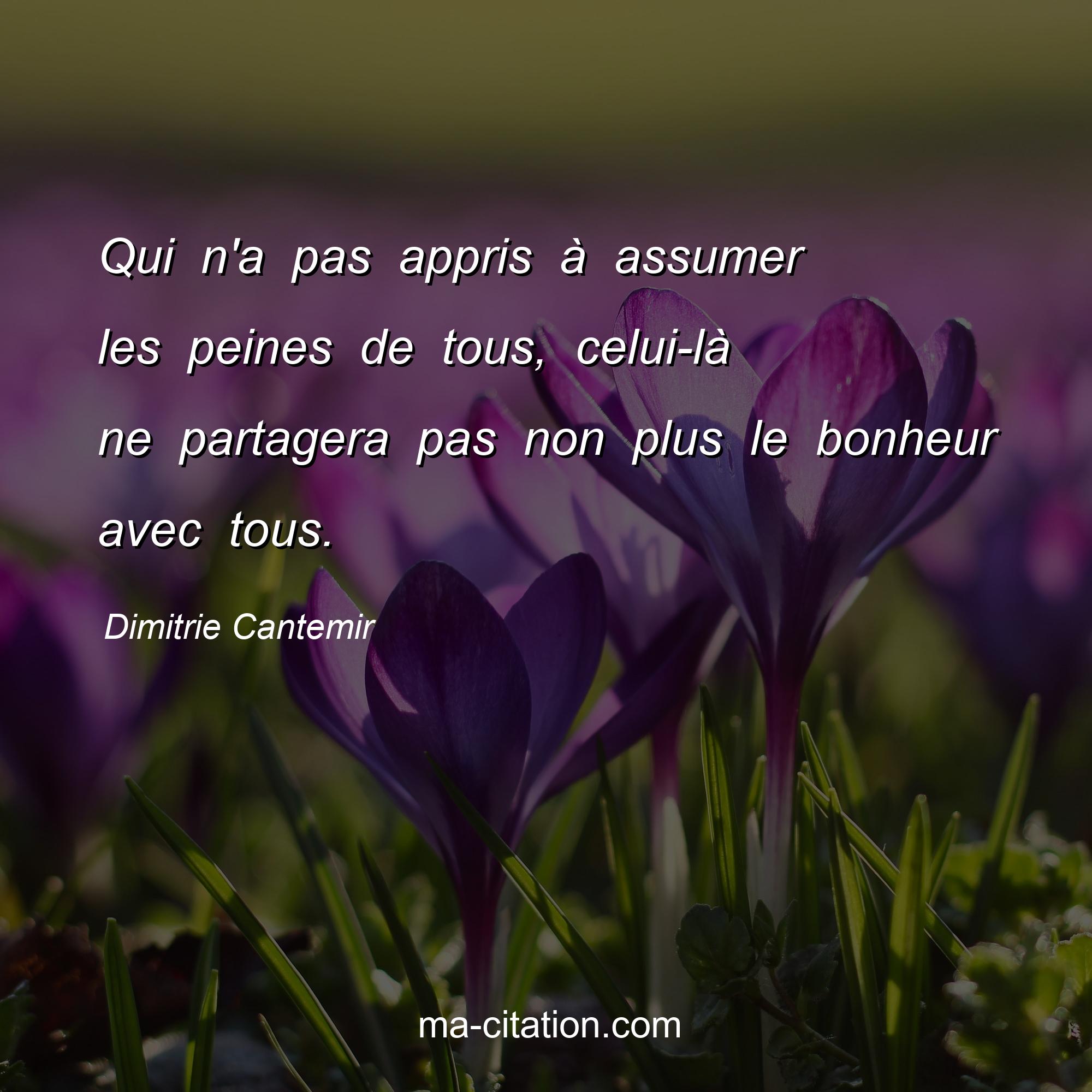 Citation sur la vie de Dimitrie Cantemir :Qui n'a pas appris à assumer les peines de tous, celui-là ne partagera pas non plus le bonheur avec tous.