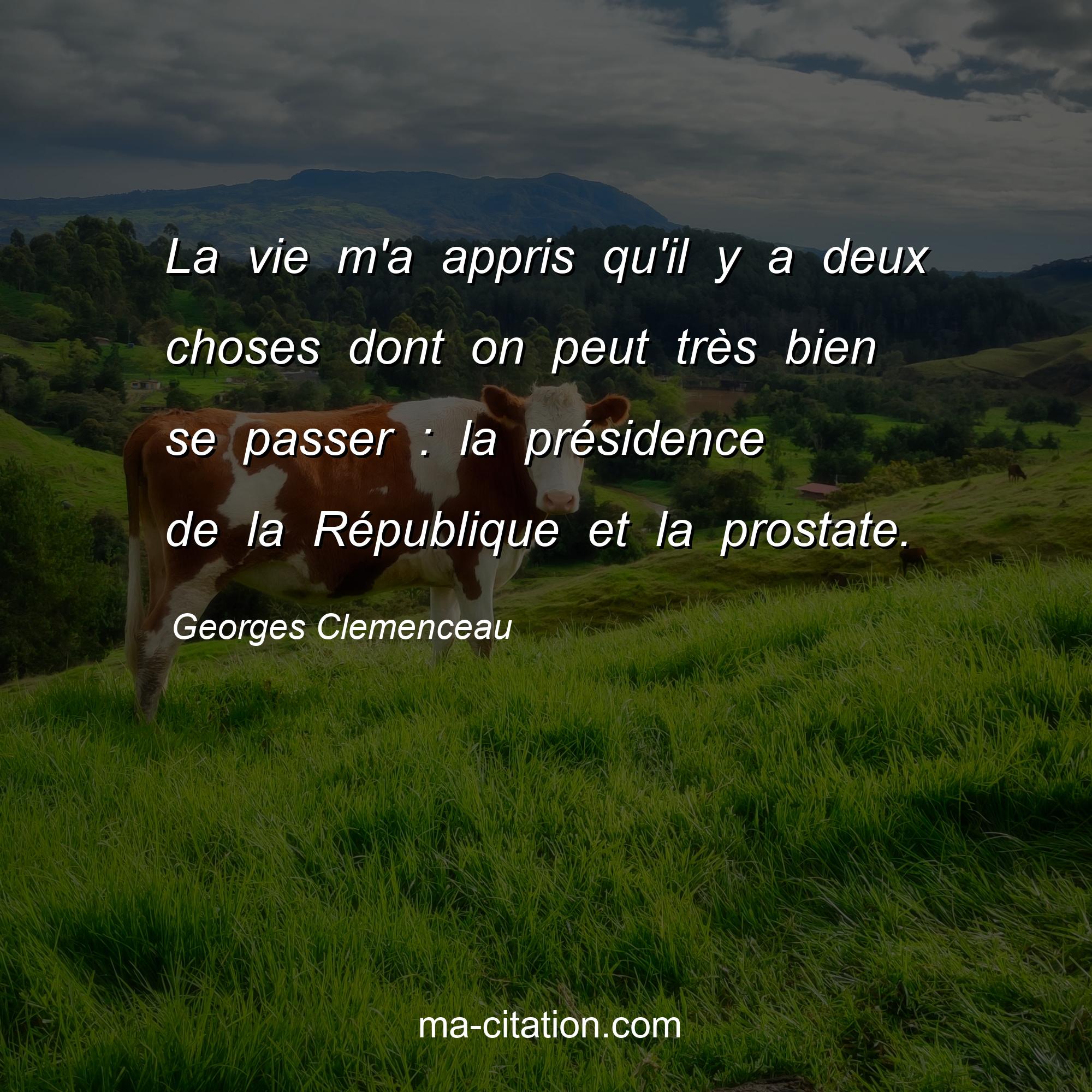Citation sur la vie de Georges Clemenceau :La vie m'a appris qu'il y a deux choses dont on peut très bien se passer : la présidence de la République et la prostate.