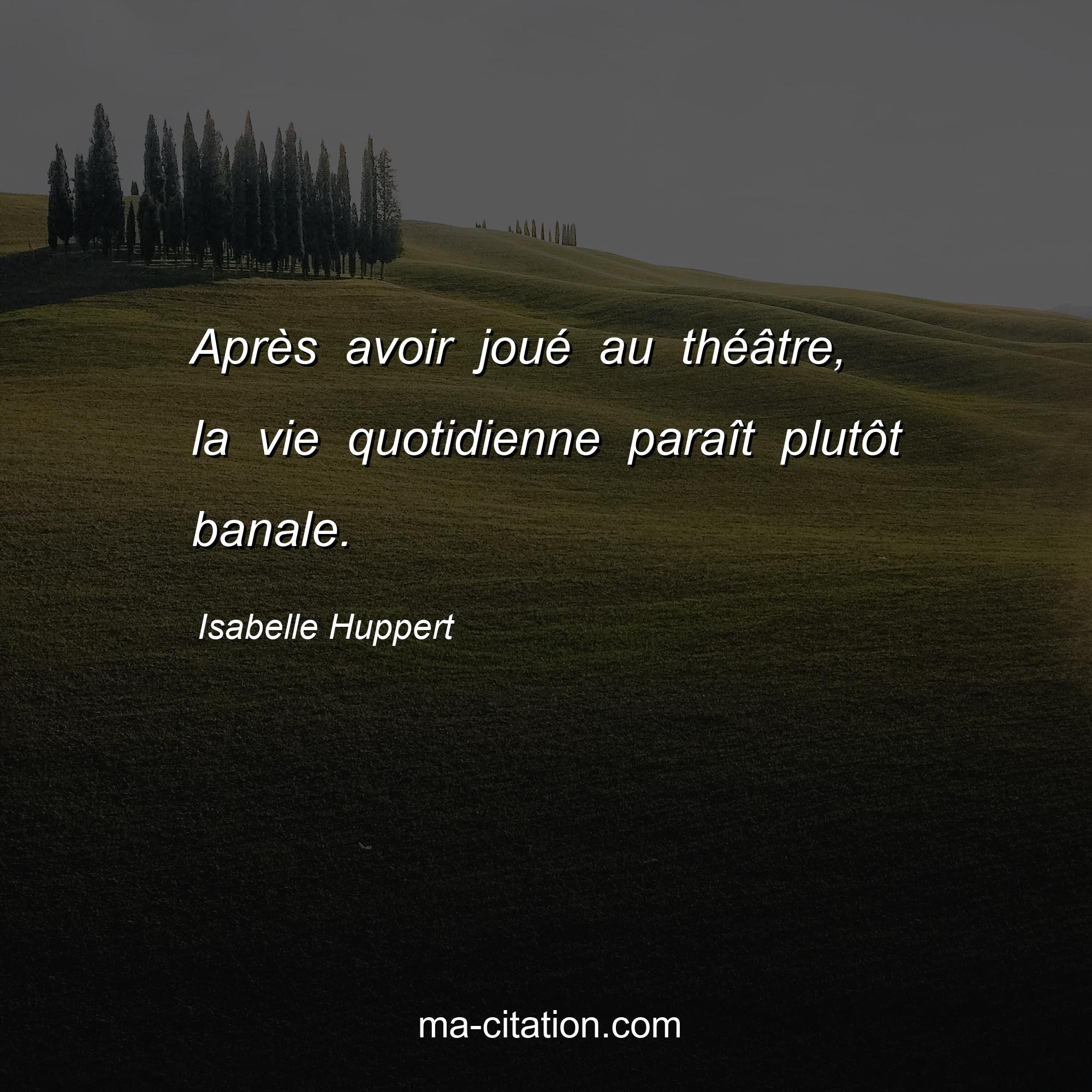 Citation sur la vie d'Isabelle Huppert :Après avoir joué au théâtre, la vie quotidienne paraît plutôt banale.