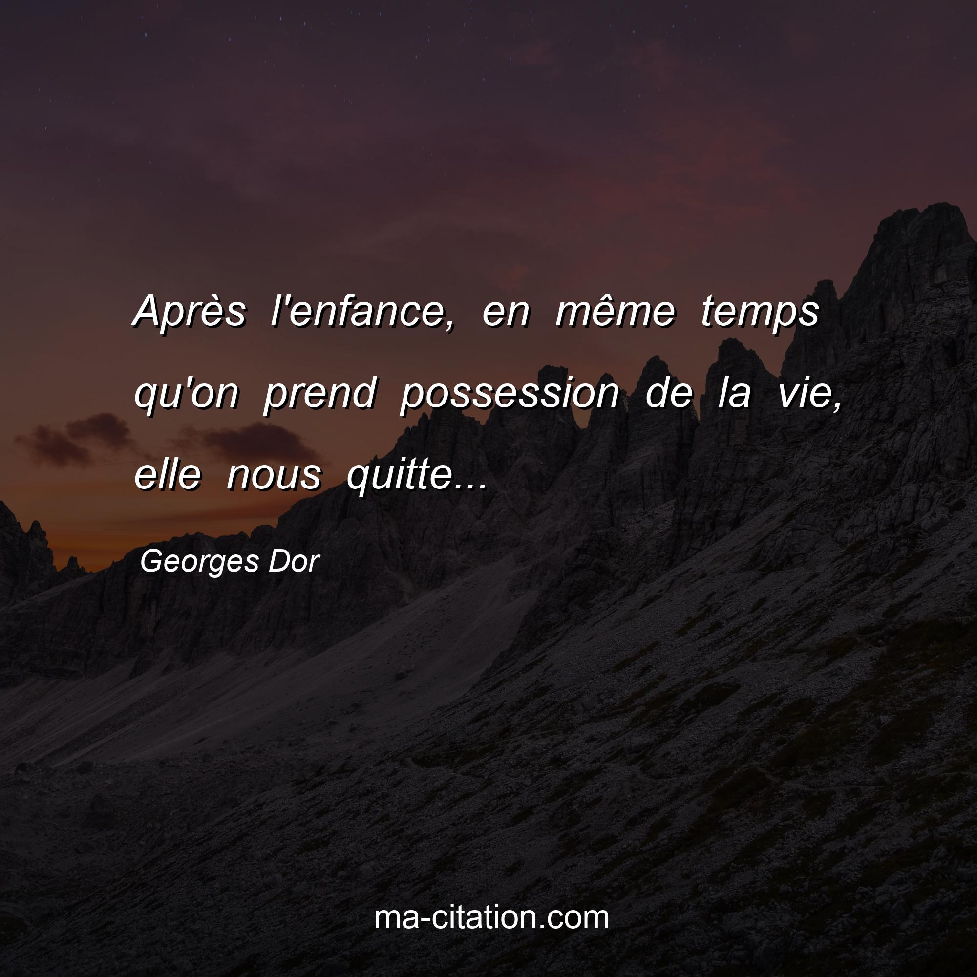 Georges Dor est l'auteur de la citation sur la vie "Après l'enfance, en même temps qu'on prend possession de la vie, elle nous quitte...".
