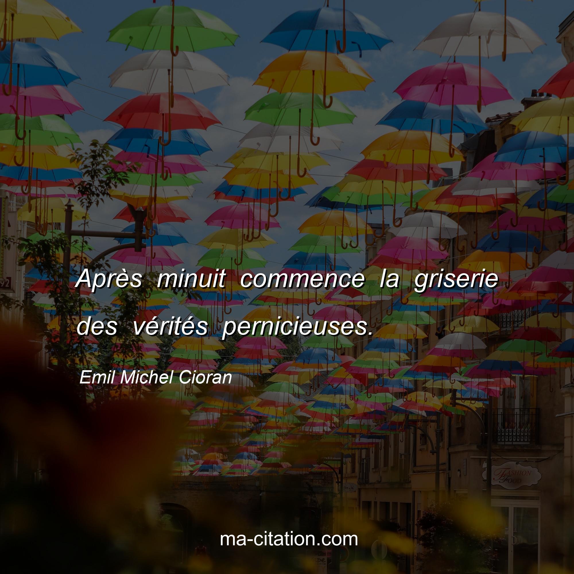 Citation sur la vie d'Emil Michel Cioran :Après minuit commence la griserie des vérités pernicieuses.