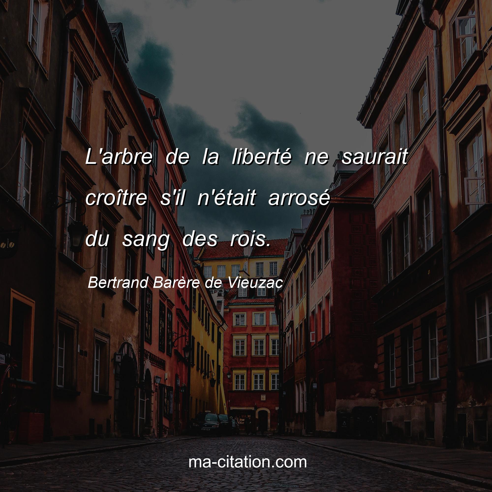 Citation sur la vie de Bertrand Barère de Vieuzac :L'arbre de la liberté ne saurait croître s'il n'était arrosé du sang des rois.