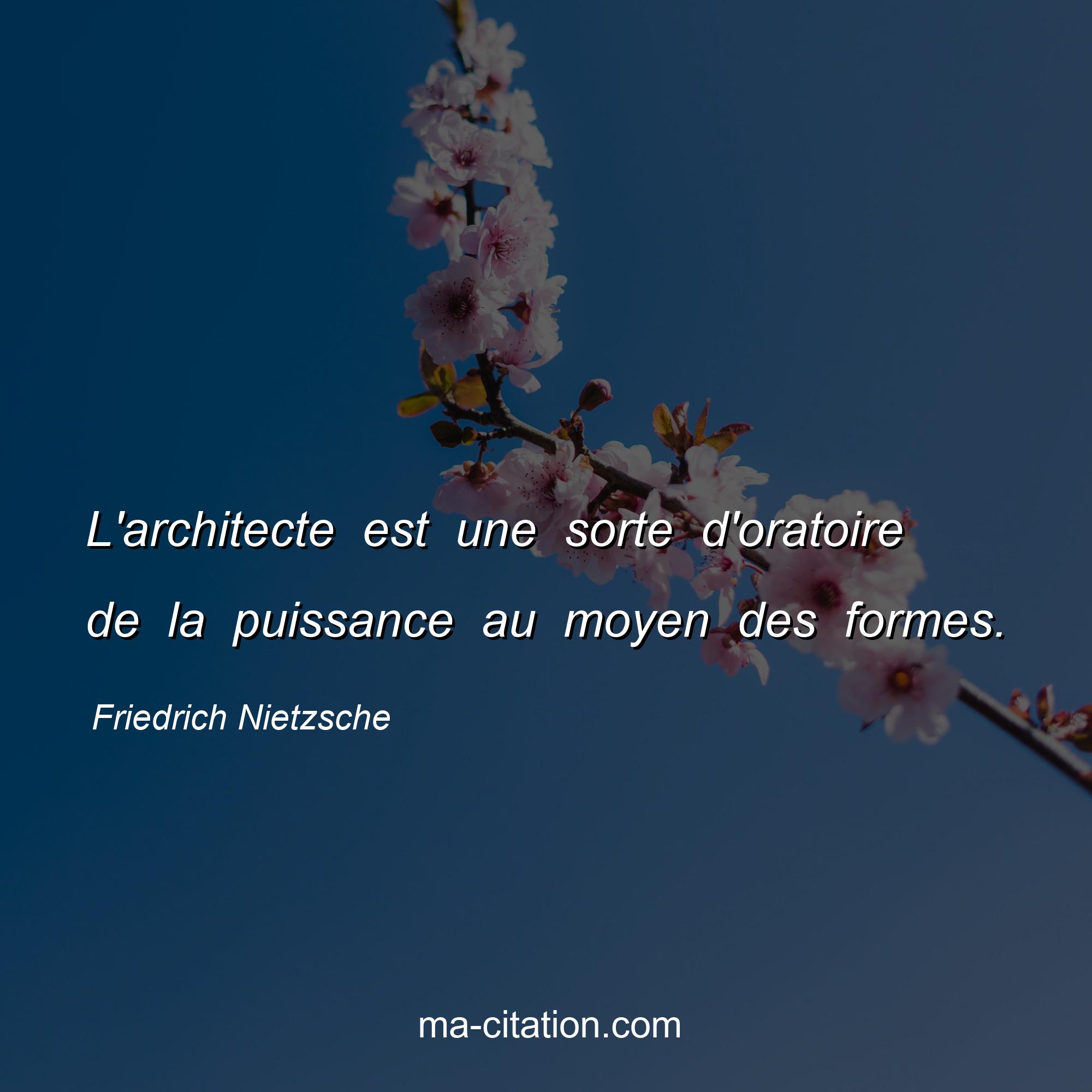 Citation sur la vie de Friedrich Nietzsche :L'architecte est une sorte d'oratoire de la puissance au moyen des formes.