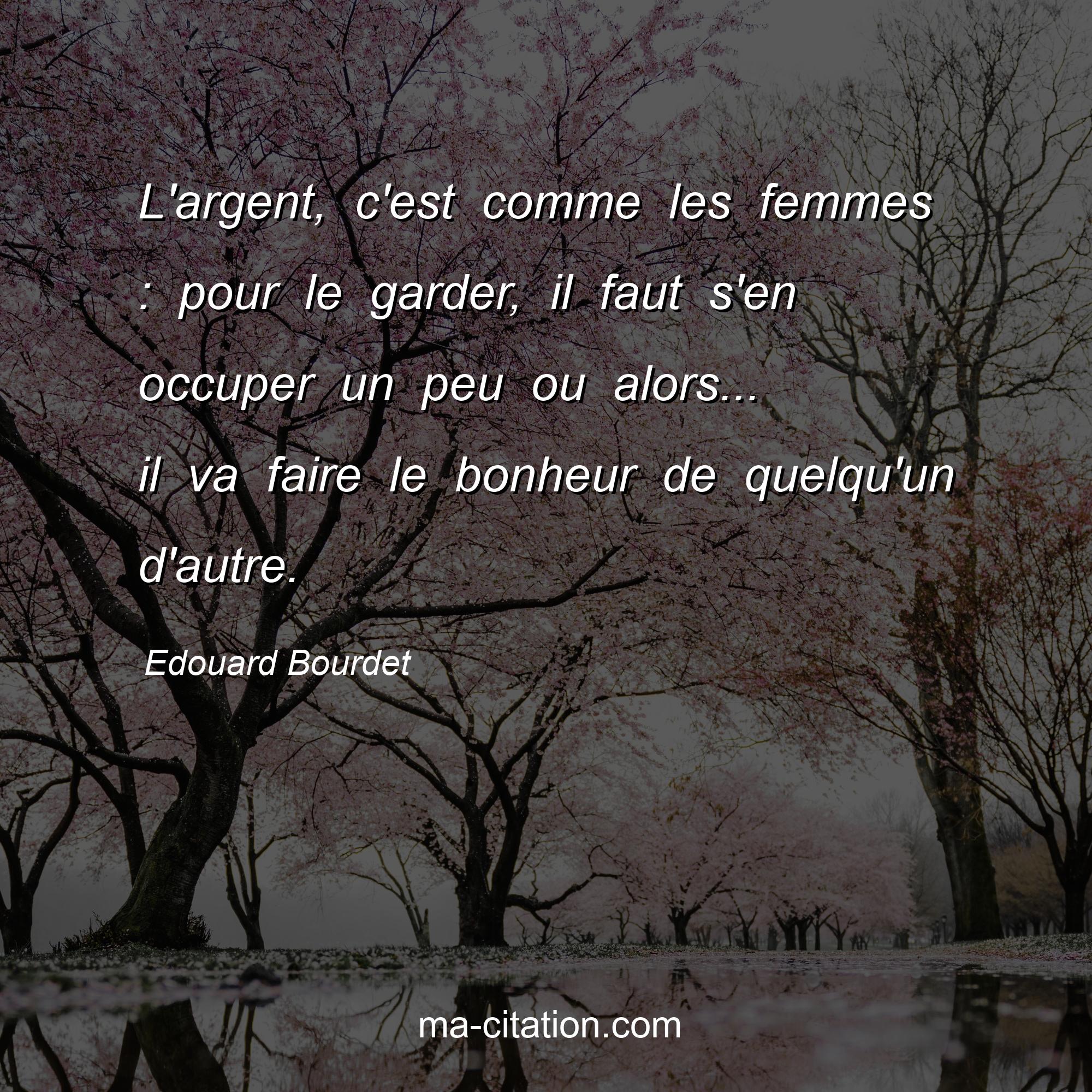 Citation sur la vie d'Edouard Bourdet :L'argent, c'est comme les femmes : pour le garder, il faut s'en occuper un peu ou alors... il va faire le bonheur de quelqu'un d'autre.