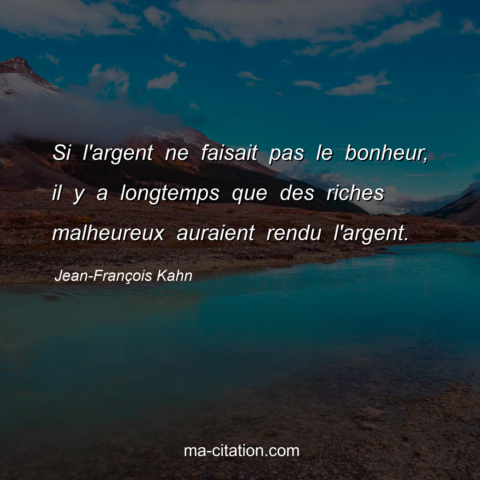 Citation sur la vie de Jean-François Kahn :Si l'argent ne faisait pas le bonheur, il y a longtemps que des riches malheureux auraient rendu l'argent.