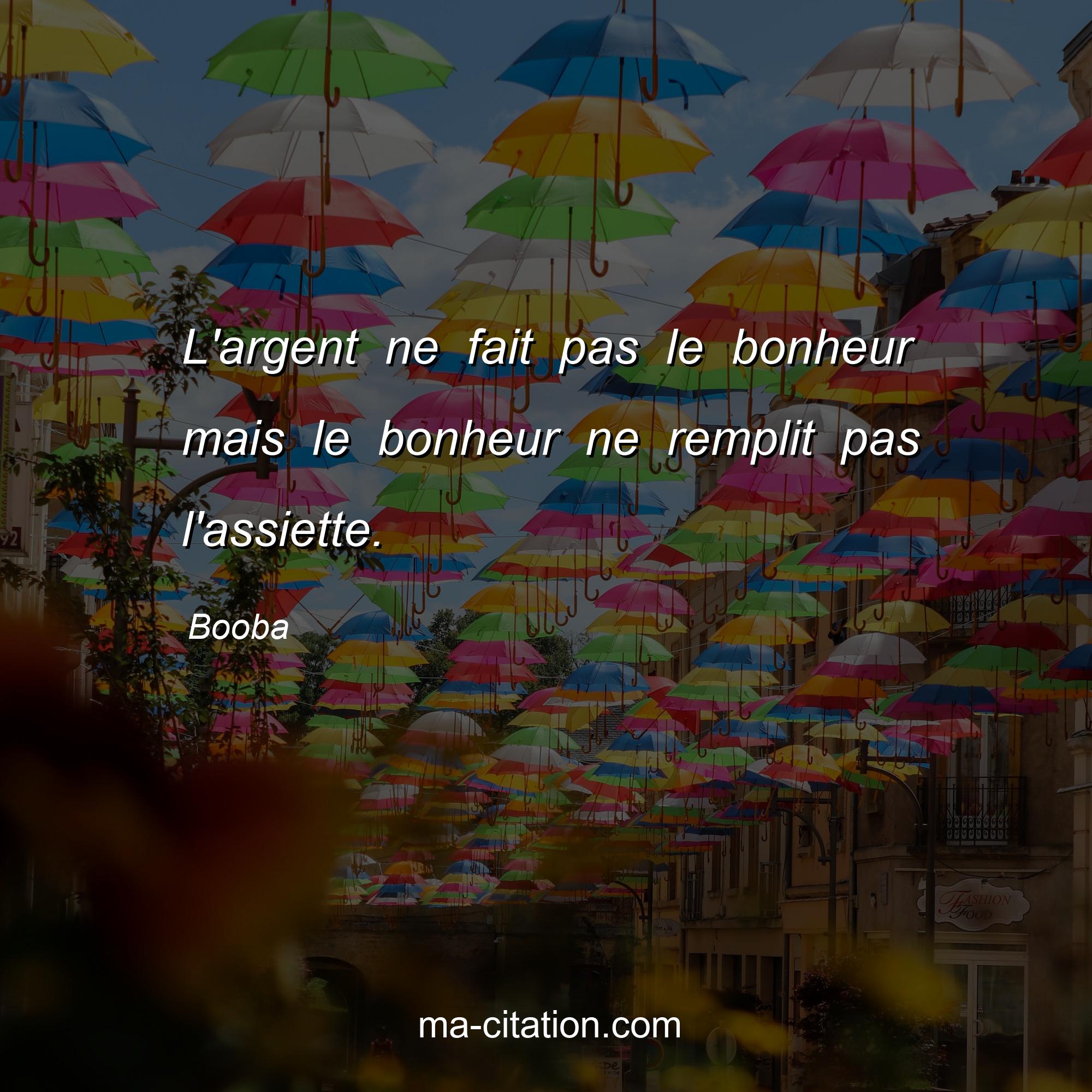 Booba est l'auteur de la citation sur la vie "L'argent ne fait pas le bonheur mais le bonheur ne remplit pas l'assiette.".