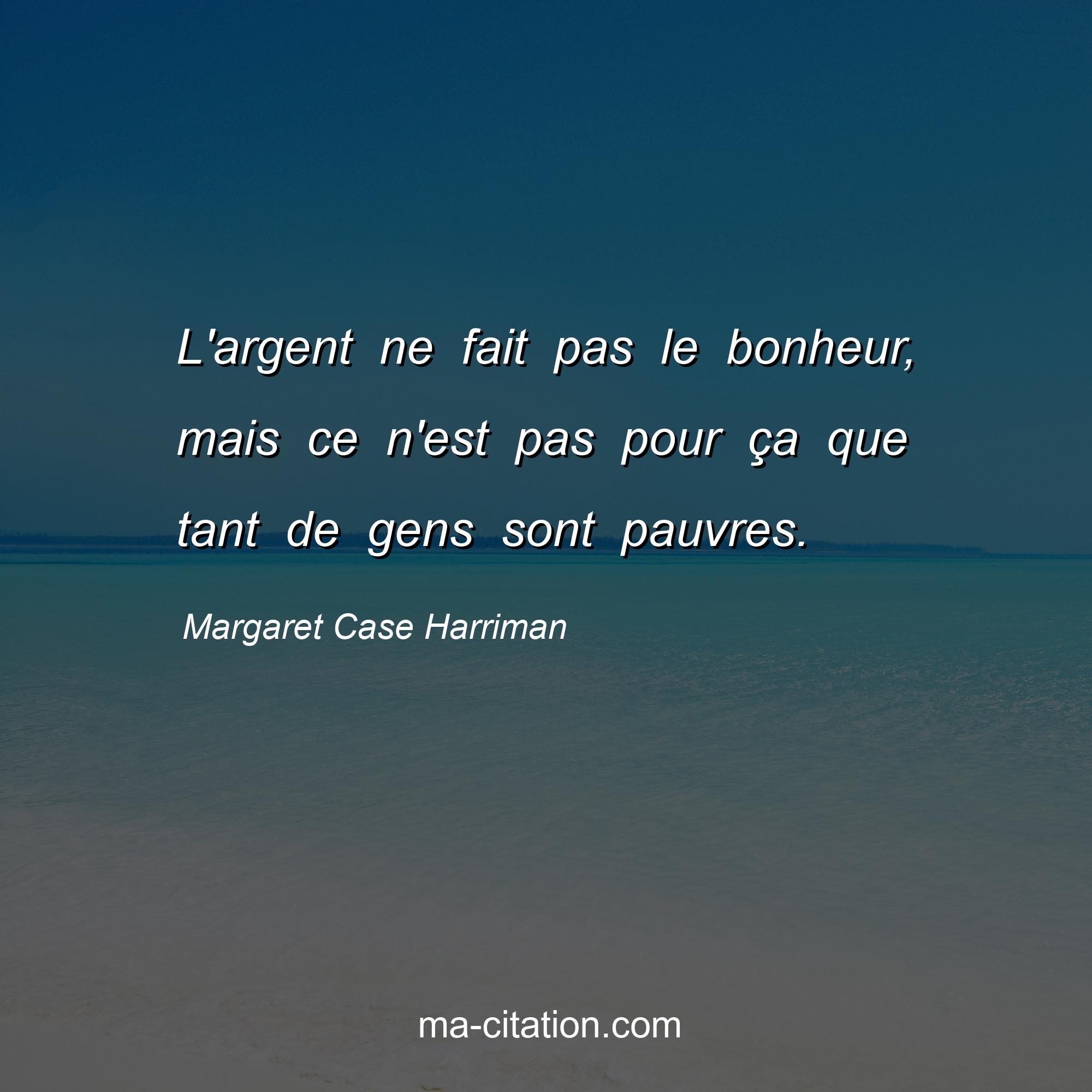 Citation sur la vie de Margaret Case Harriman :L'argent ne fait pas le bonheur, mais ce n'est pas pour ça que tant de gens sont pauvres.