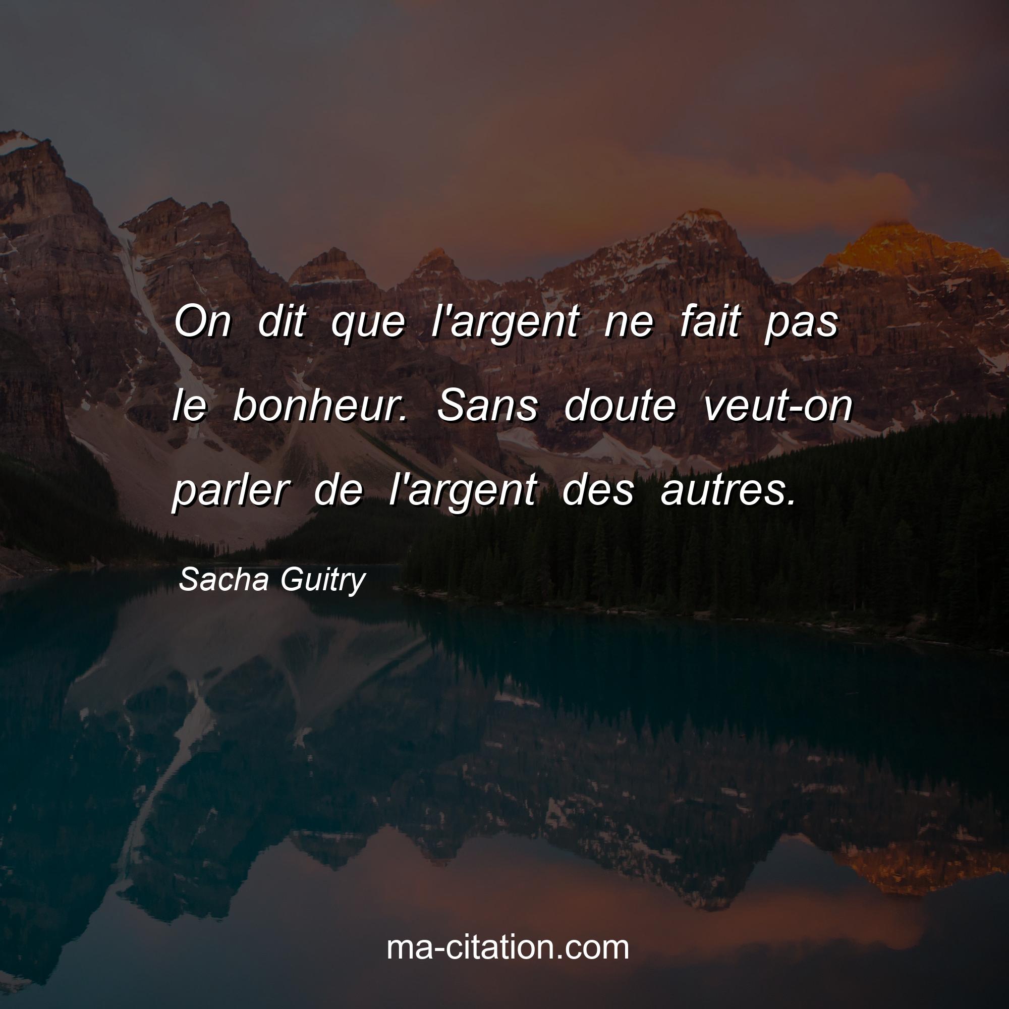 Sacha Guitry est l'auteur de la citation sur la vie "On dit que l'argent ne fait pas le bonheur. Sans doute veut-on parler de l'argent des autres.".