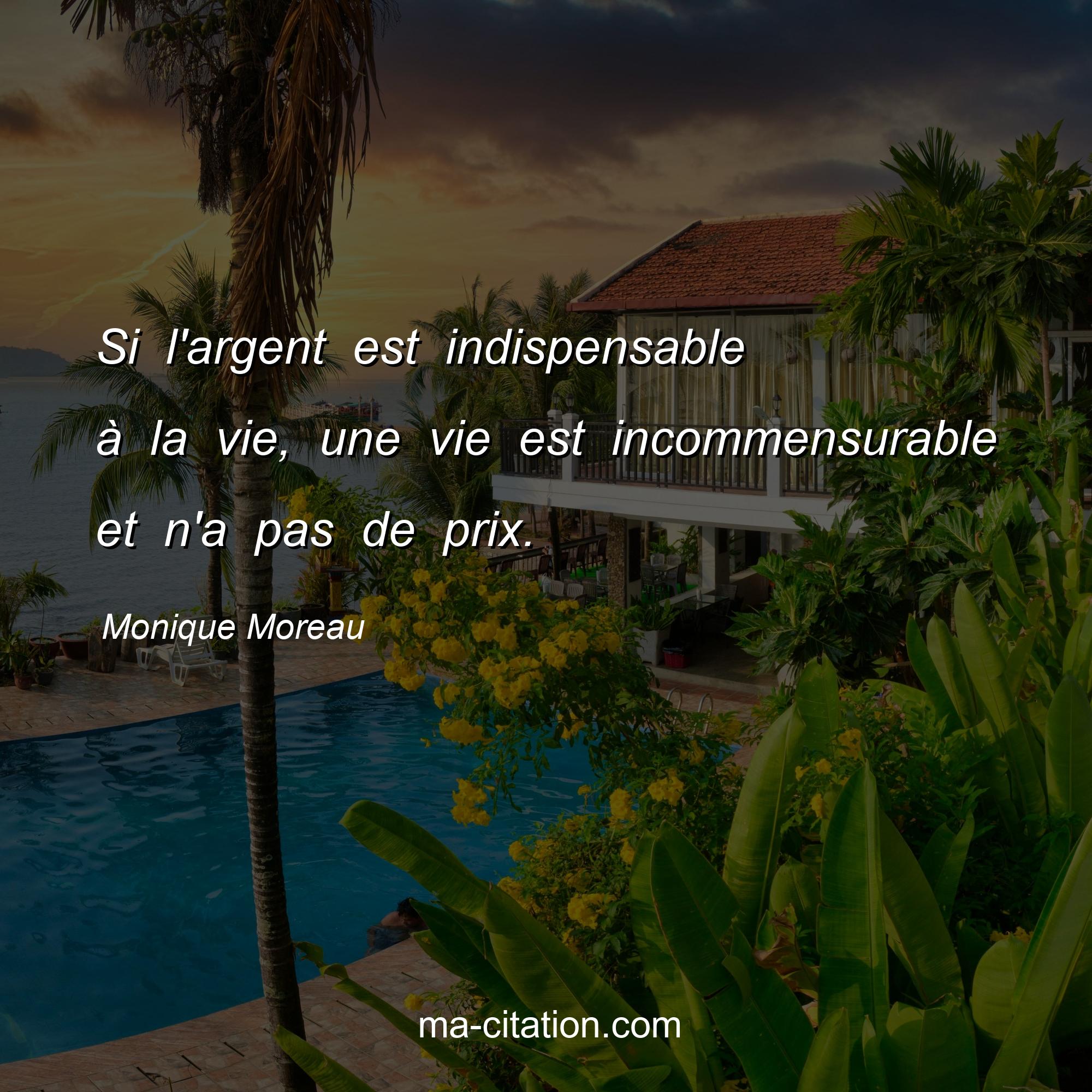 Monique Moreau est l'auteur de la citation sur la vie "Si l'argent est indispensable à la vie, une vie est incommensurable et n'a pas de prix.".