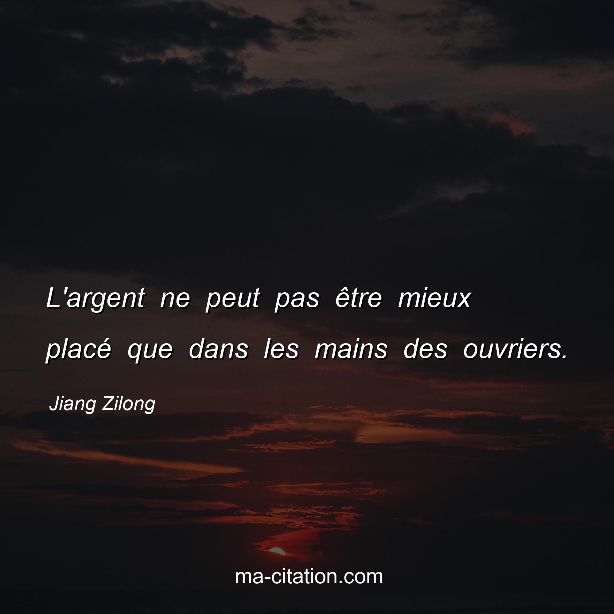 Jiang Zilong est l'auteur de la citation sur la vie "L'argent ne peut pas être mieux placé que dans les mains des ouvriers.".