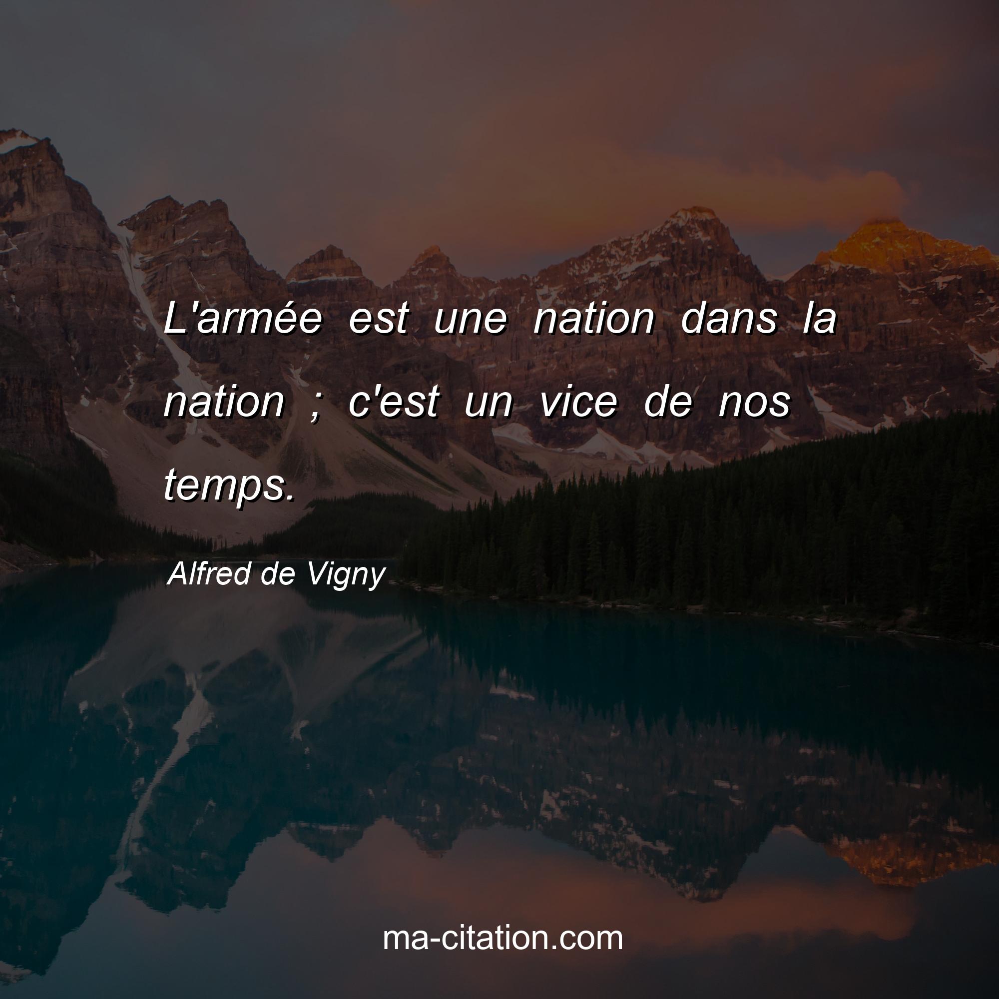 Citation sur la vie d'Alfred de Vigny :L'armée est une nation dans la nation ; c'est un vice de nos temps.