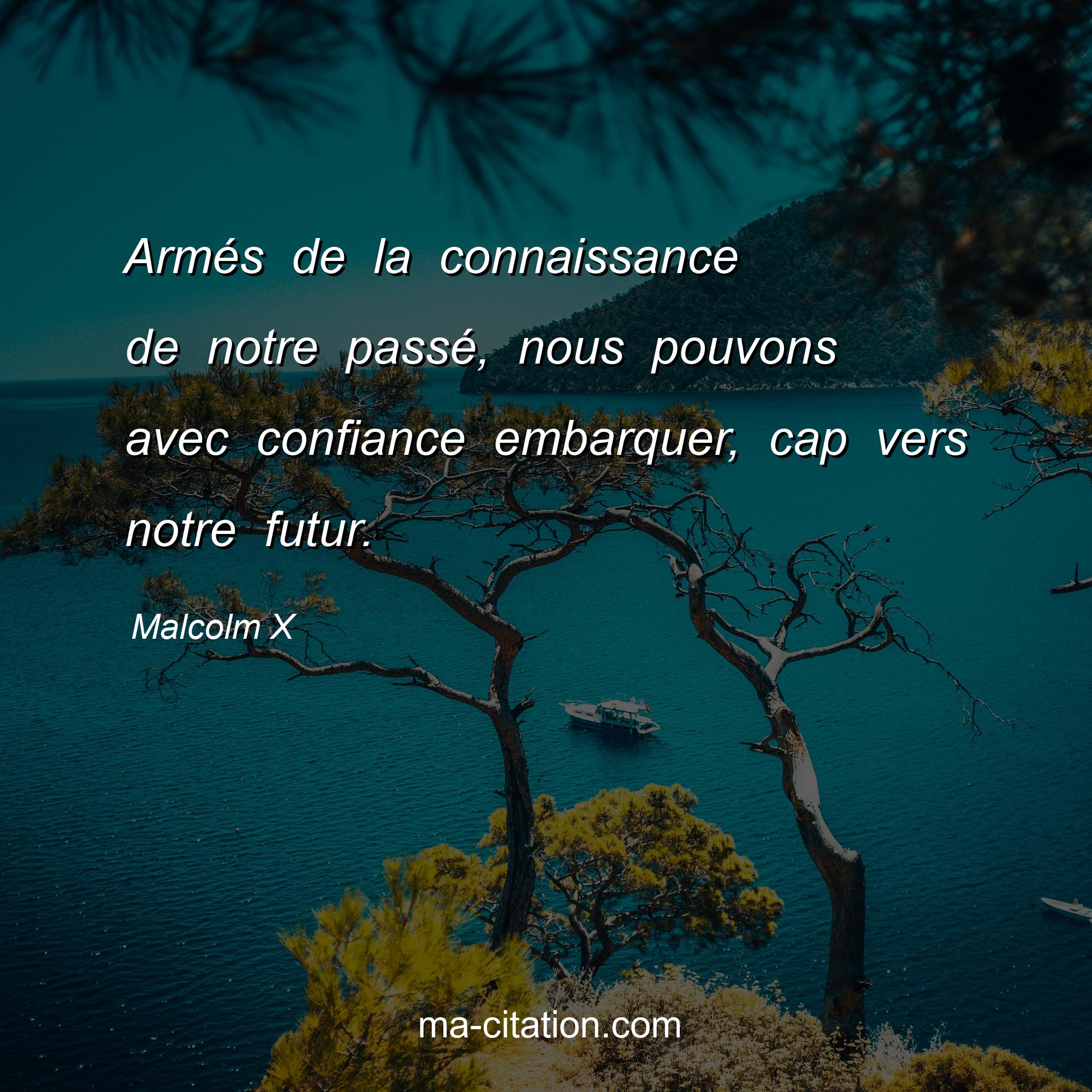 Citation sur la vie de Malcolm X :Armés de la connaissance de notre passé, nous pouvons avec confiance embarquer, cap vers notre futur.
