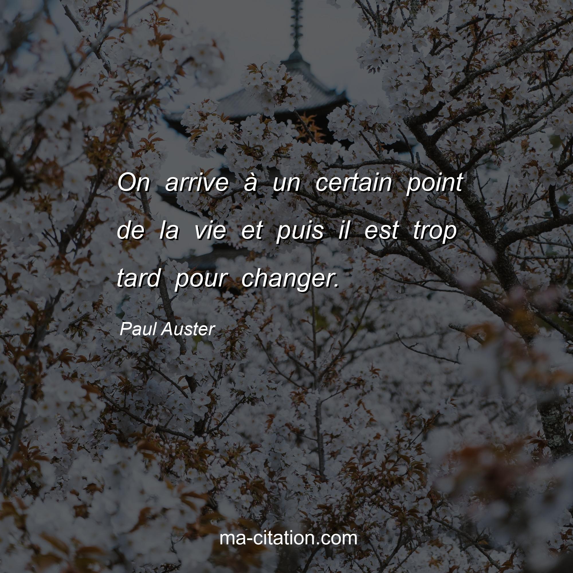 Paul Auster est l'auteur de la citation sur la vie "On arrive à un certain point de la vie et puis il est trop tard pour changer.".