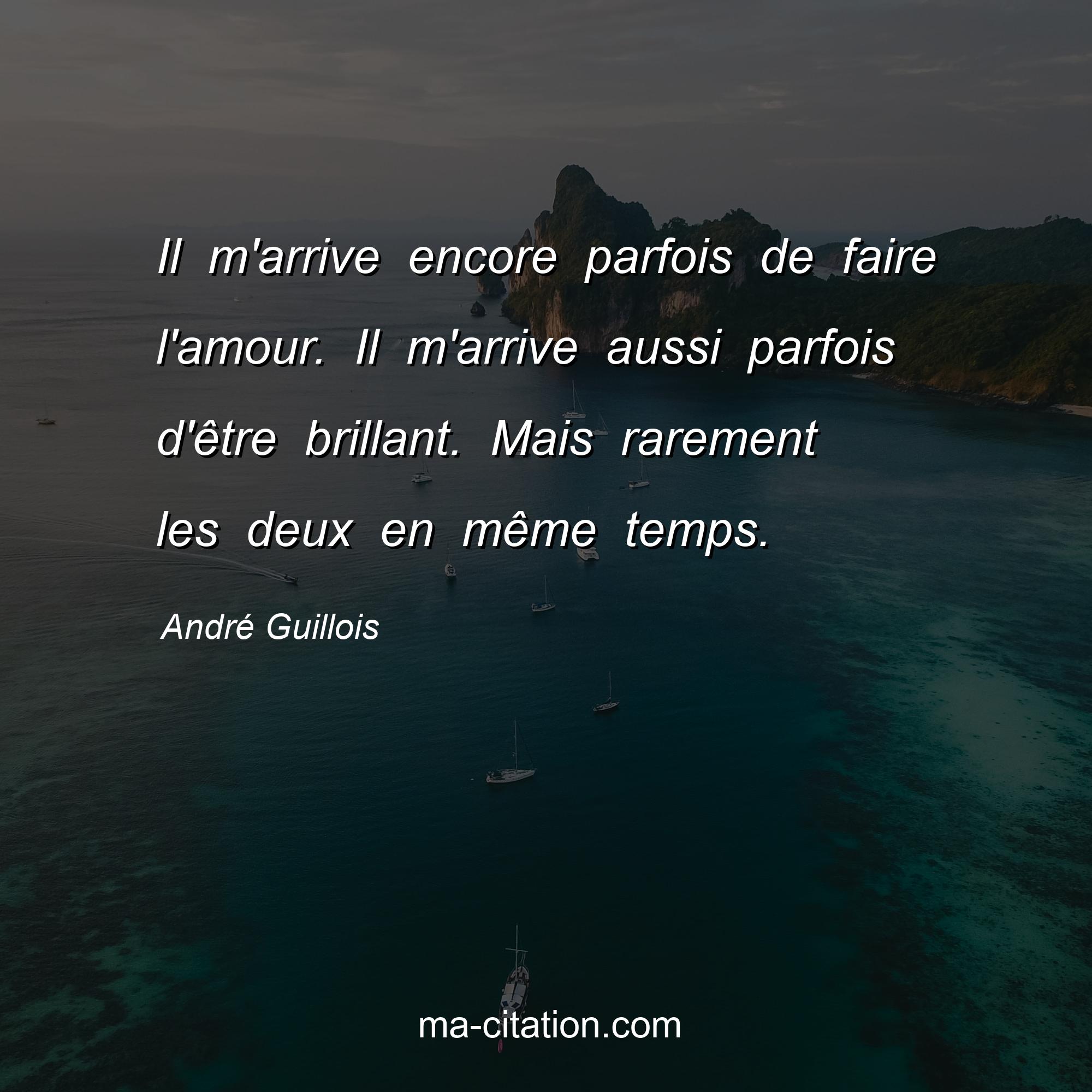 Citation sur la vie d'André Guillois :Il m'arrive encore parfois de faire l'amour. Il m'arrive aussi parfois d'être brillant. Mais rarement les deux en même temps.