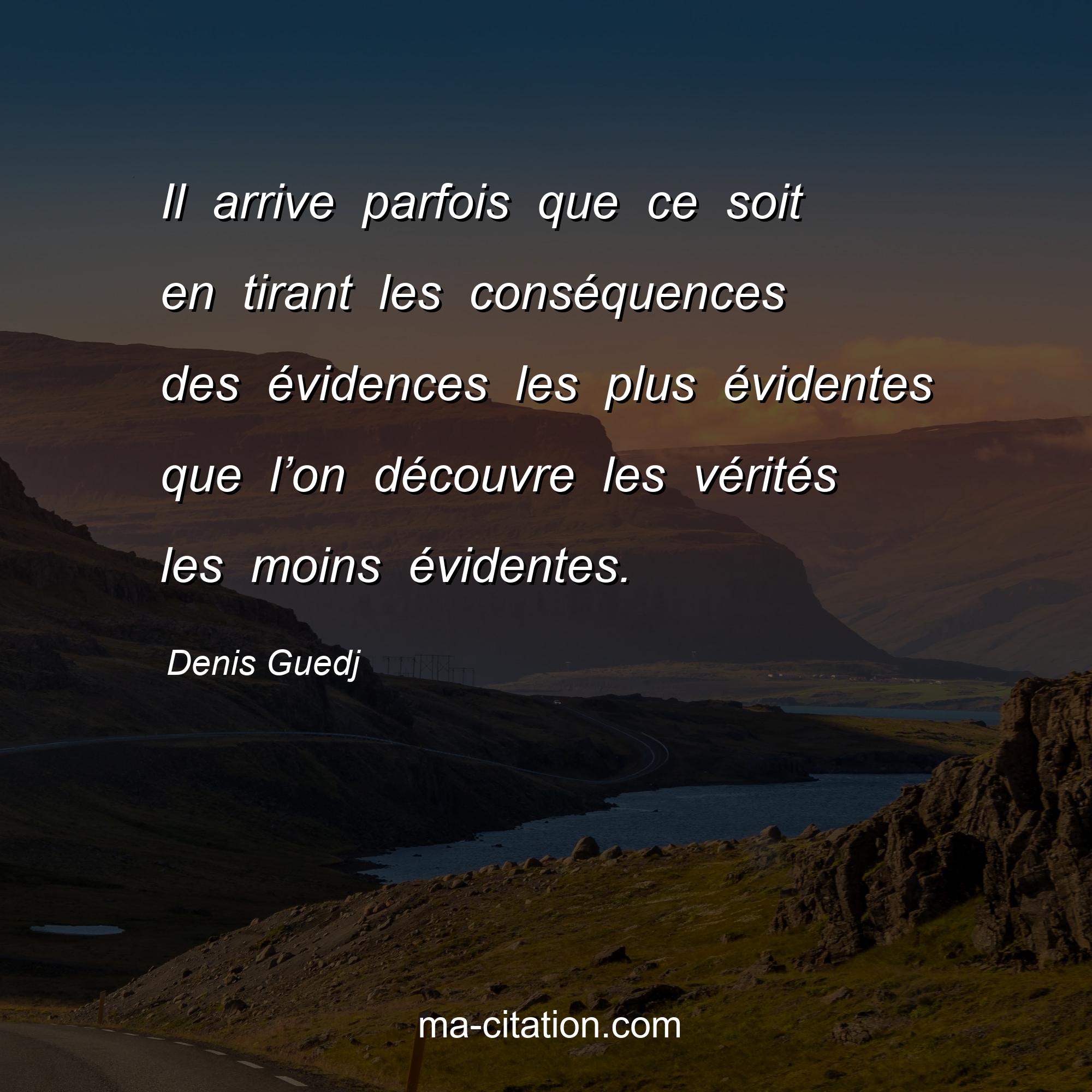 Citation sur la vie de Denis Guedj :Il arrive parfois que ce soit en tirant les conséquences des évidences les plus évidentes que l’on découvre les vérités les moins évidentes.