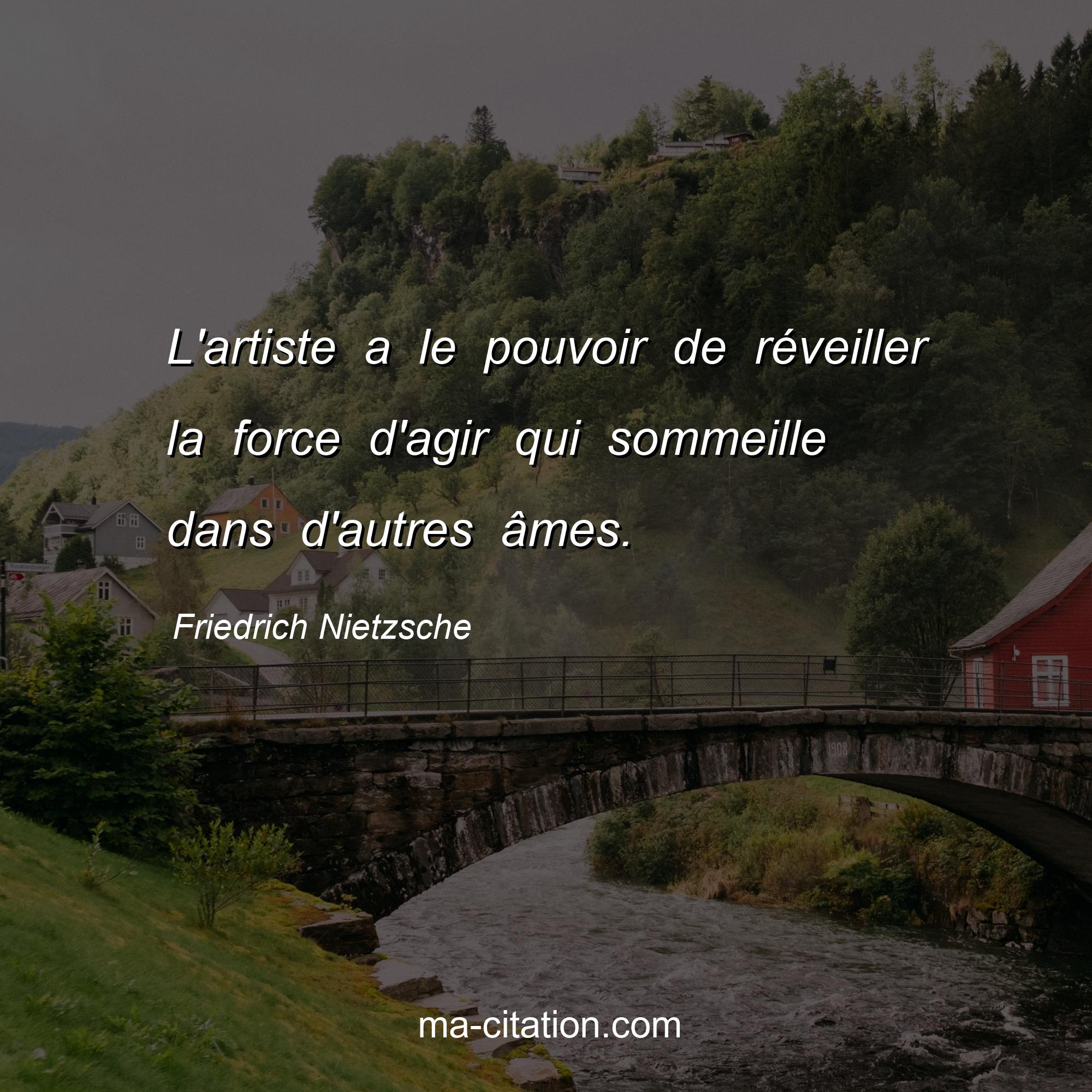 Citation sur la vie de Friedrich Nietzsche :L'artiste a le pouvoir de réveiller la force d'agir qui sommeille dans d'autres âmes.