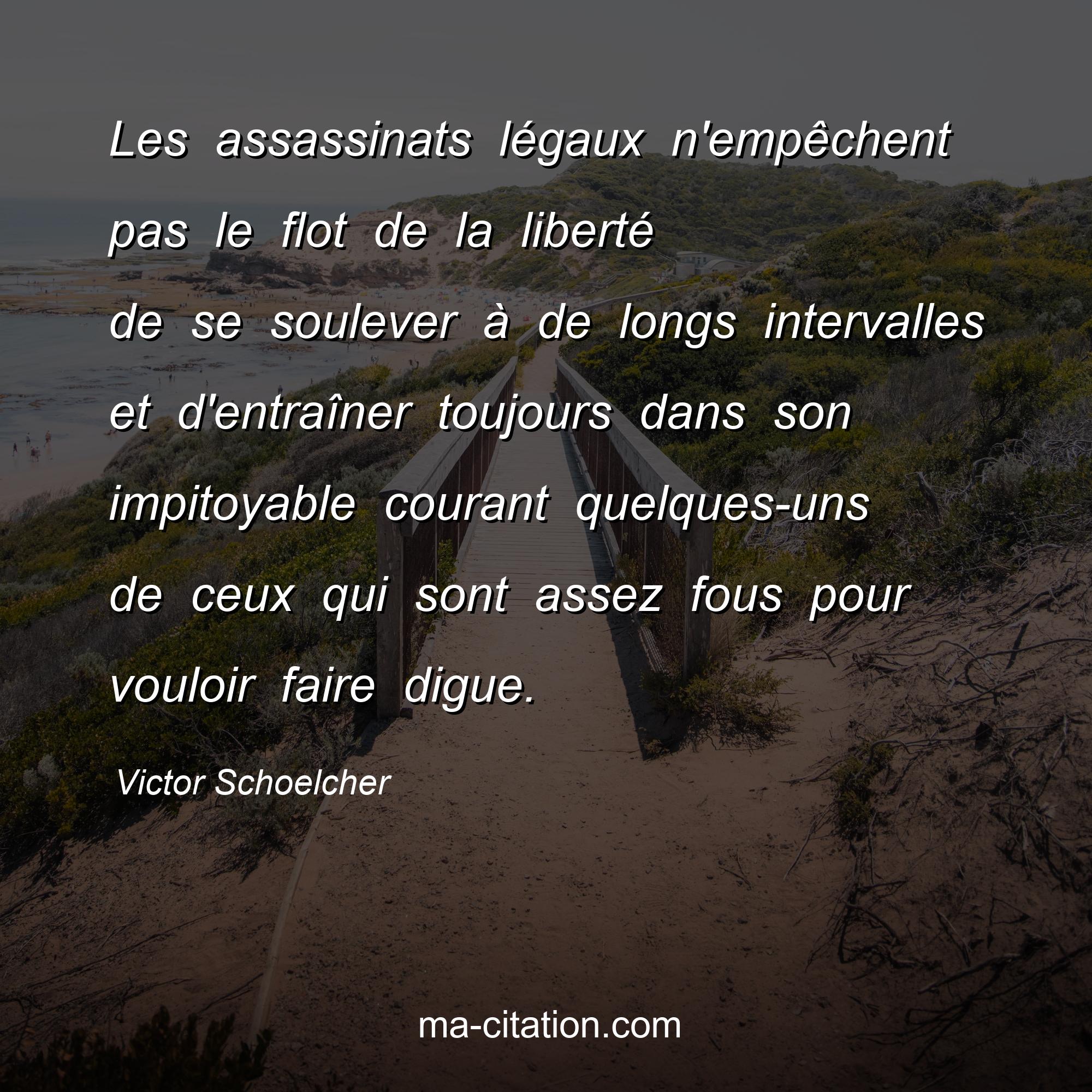 Citation sur la vie de Victor Schoelcher :Les assassinats légaux n'empêchent pas le flot de la liberté de se soulever à de longs intervalles et d'entraîner toujours dans son impitoyable courant quelques-uns de ceux qui sont assez fous pour vouloir faire digue.