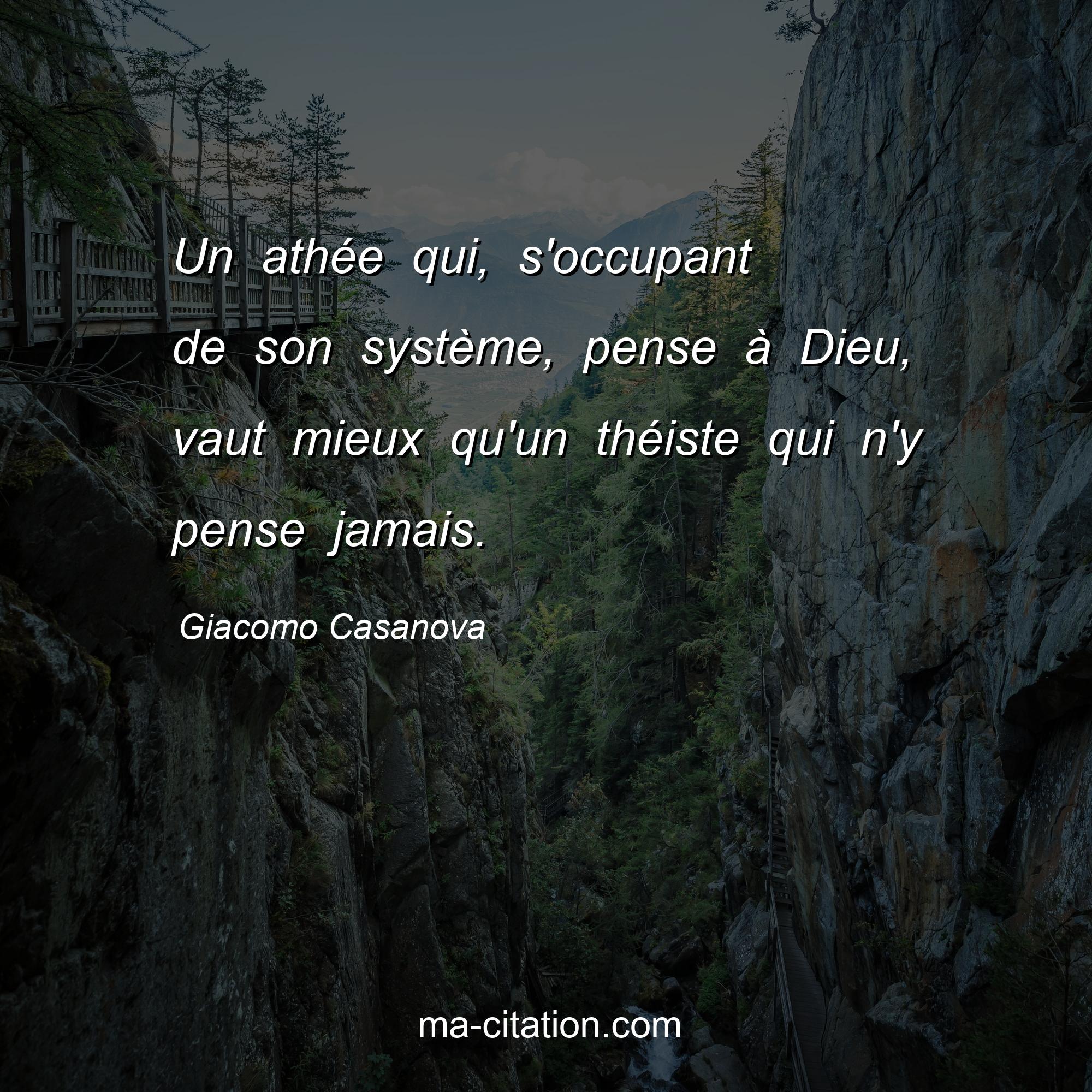 Citation sur la vie de Giacomo Casanova :Un athée qui, s'occupant de son système, pense à Dieu, vaut mieux qu'un théiste qui n'y pense jamais.