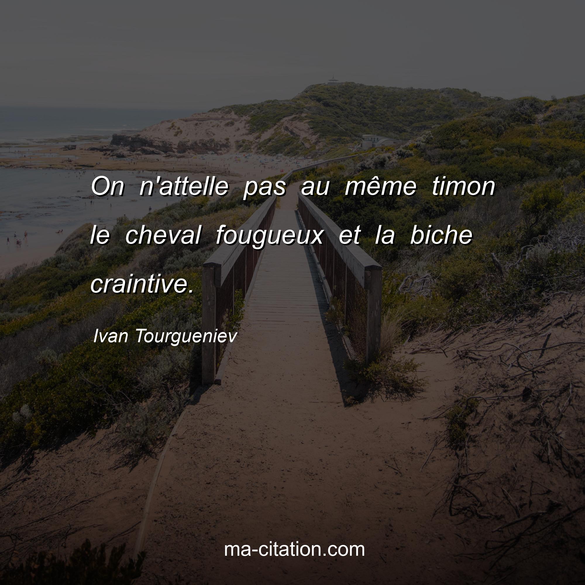 Citation sur la vie d'Ivan Tourgueniev :On n'attelle pas au même timon le cheval fougueux et la biche craintive.