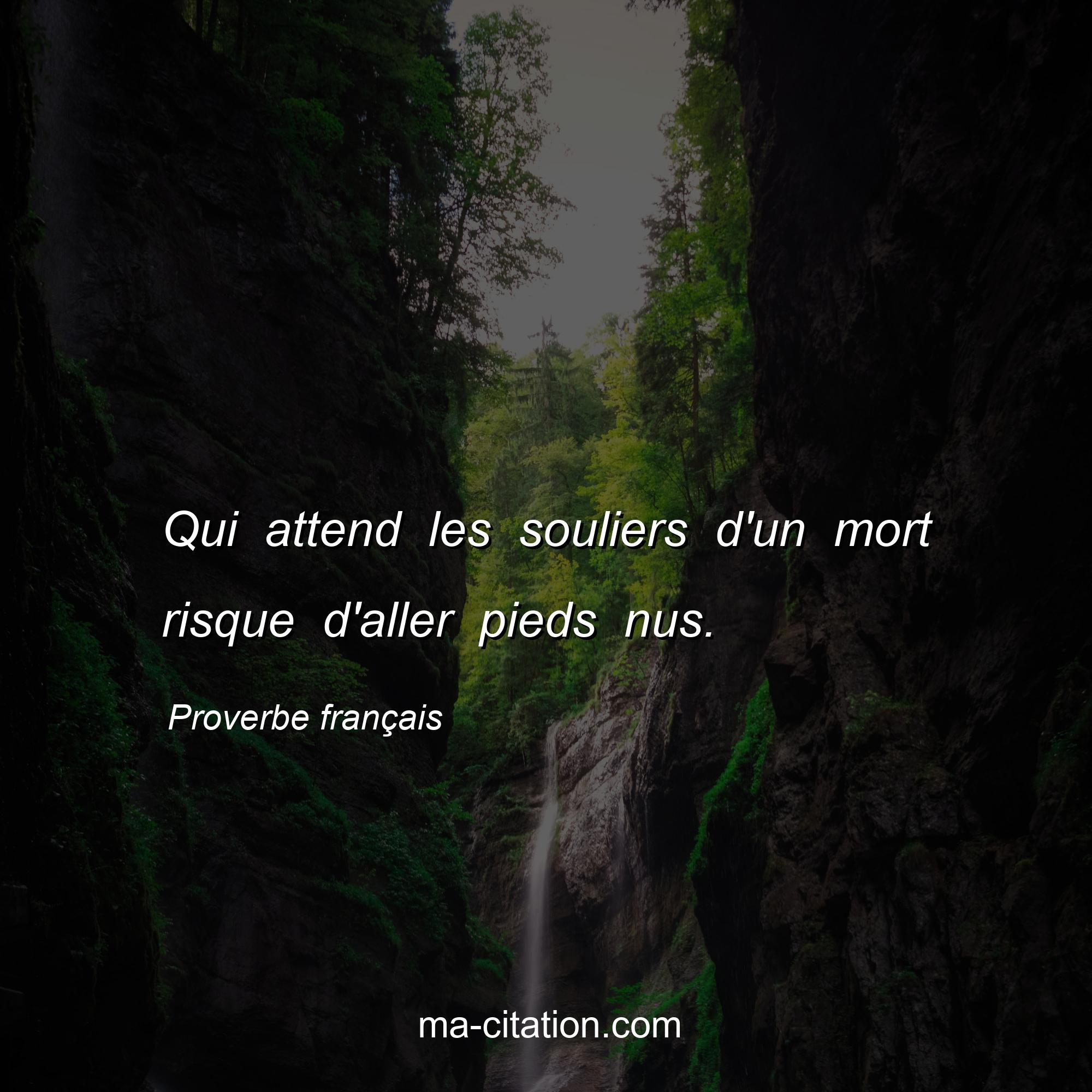 Proverbe français sur la vie :Qui attend les souliers d'un mort risque d'aller pieds nus.