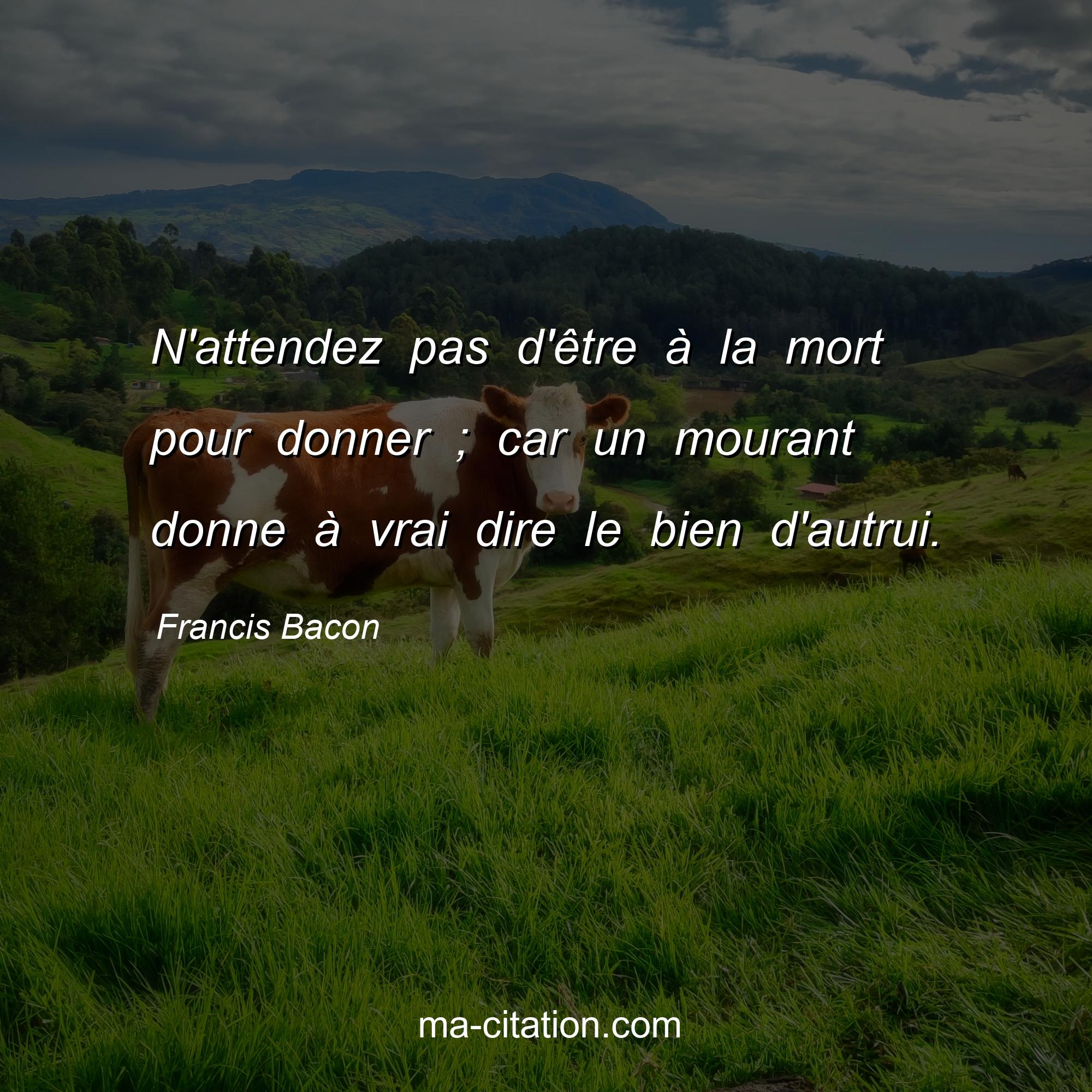 Citation sur la vie de Francis Bacon :N'attendez pas d'être à la mort pour donner ; car un mourant donne à vrai dire le bien d'autrui.