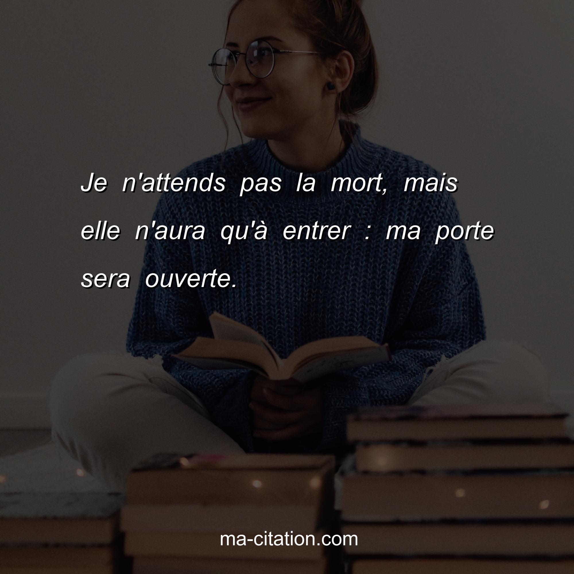 Citation sur la vie :Je n'attends pas la mort, mais elle n'aura qu'Ã entrer : ma porte sera ouverte.