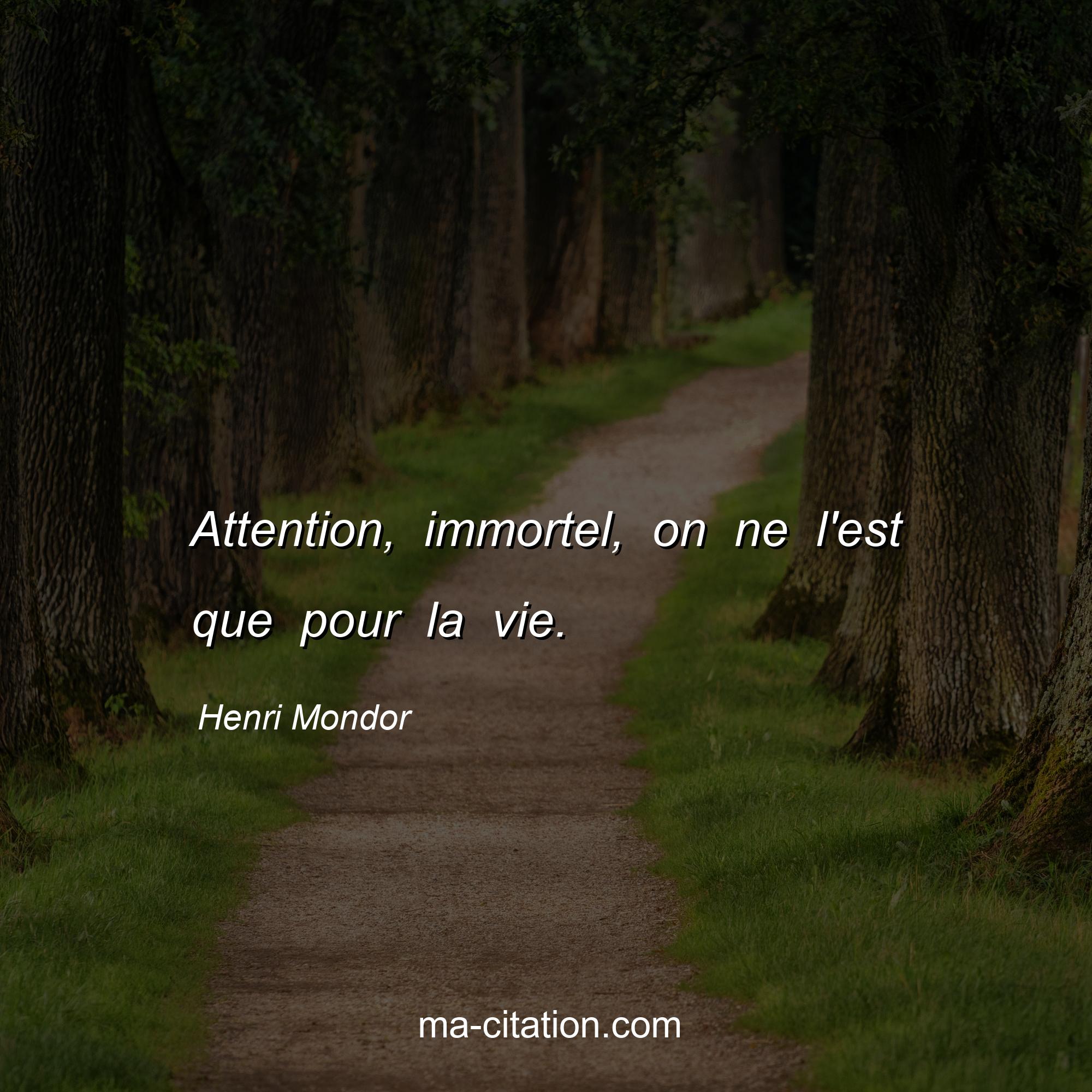 Henri Mondor est l'auteur de la citation sur la vie "Attention, immortel, on ne l'est que pour la vie.".
