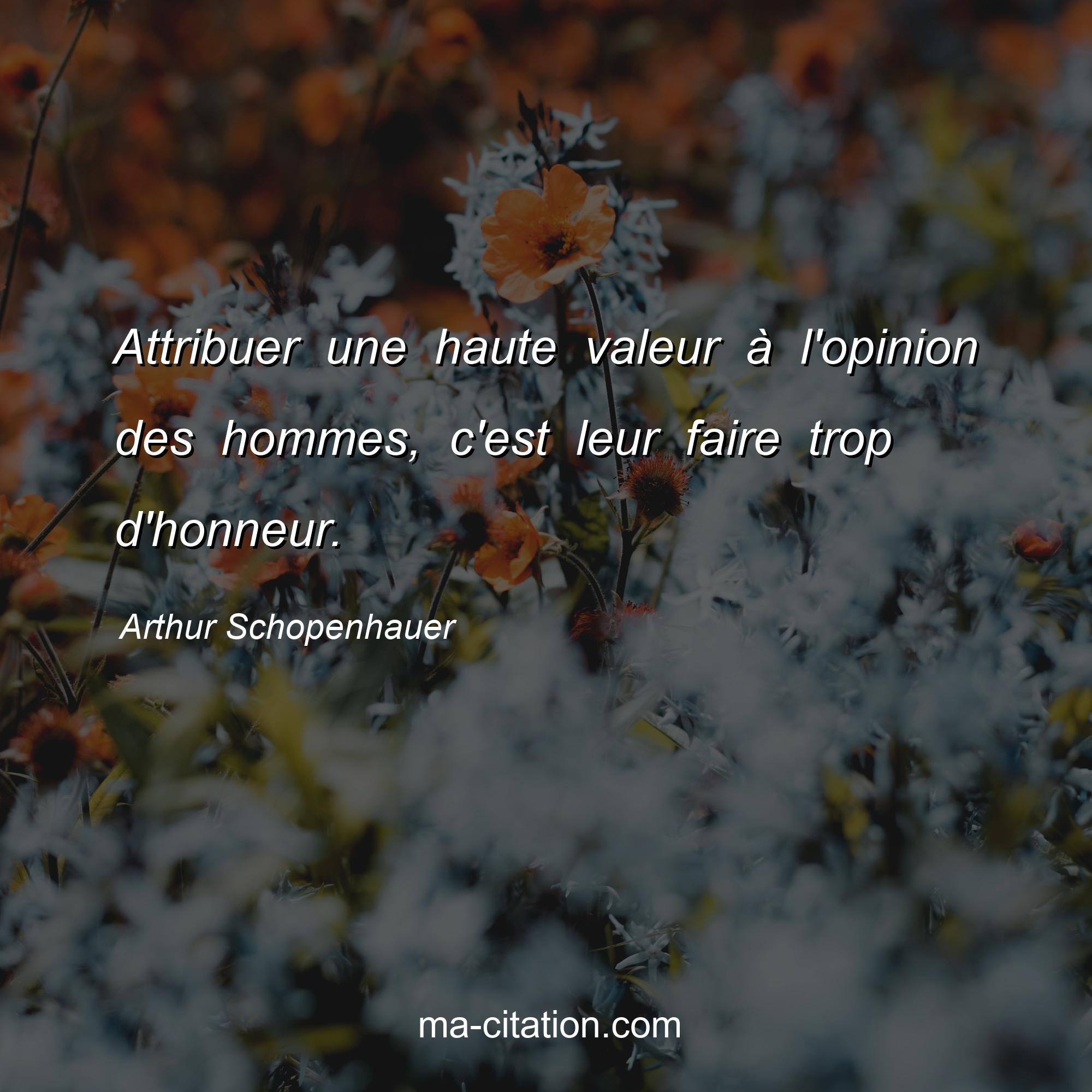 Citation sur la vie d'Arthur Schopenhauer :Attribuer une haute valeur à l'opinion des hommes, c'est leur faire trop d'honneur.