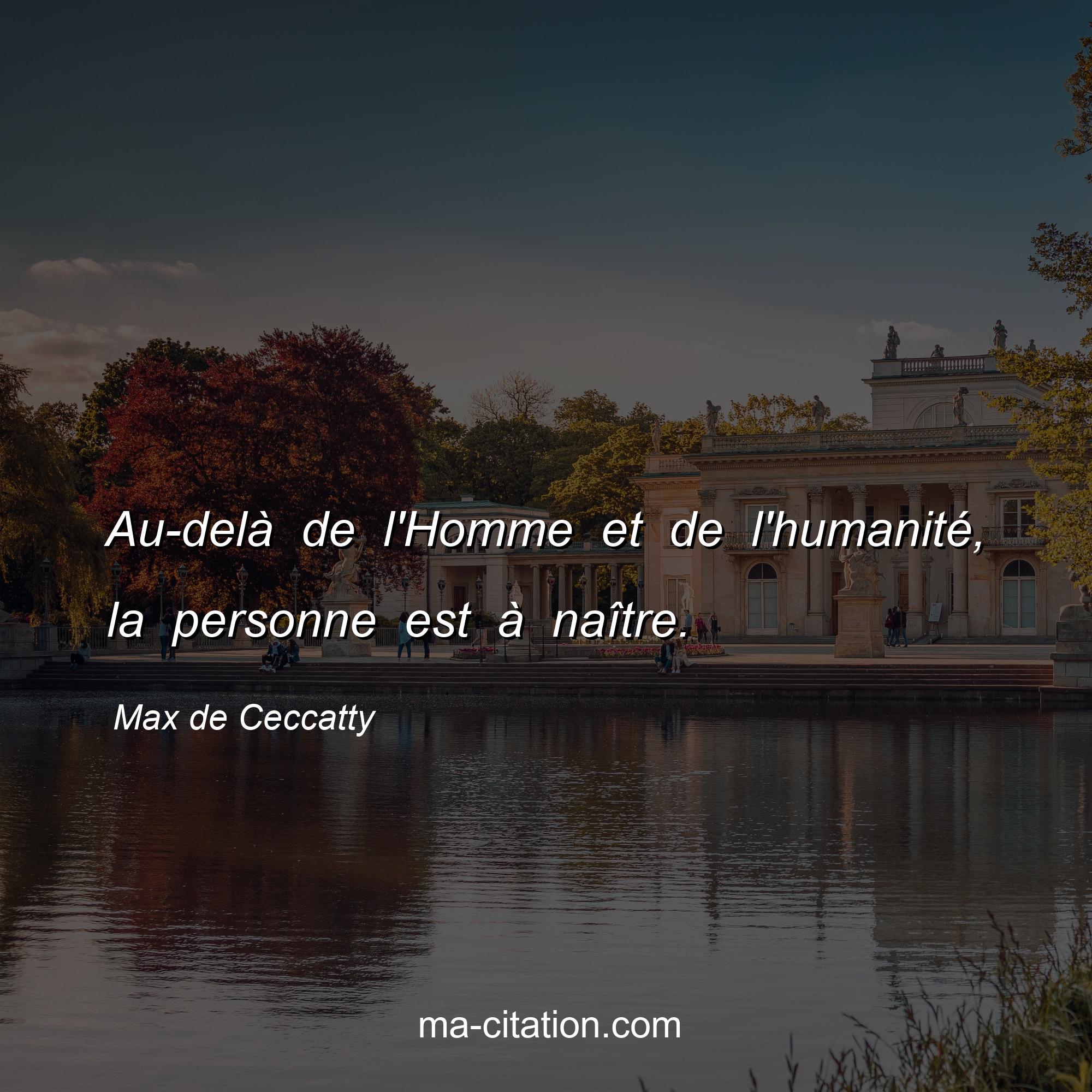Citation sur la vie de Max de Ceccatty :Au-delà de l'Homme et de l'humanité, la personne est à naître.