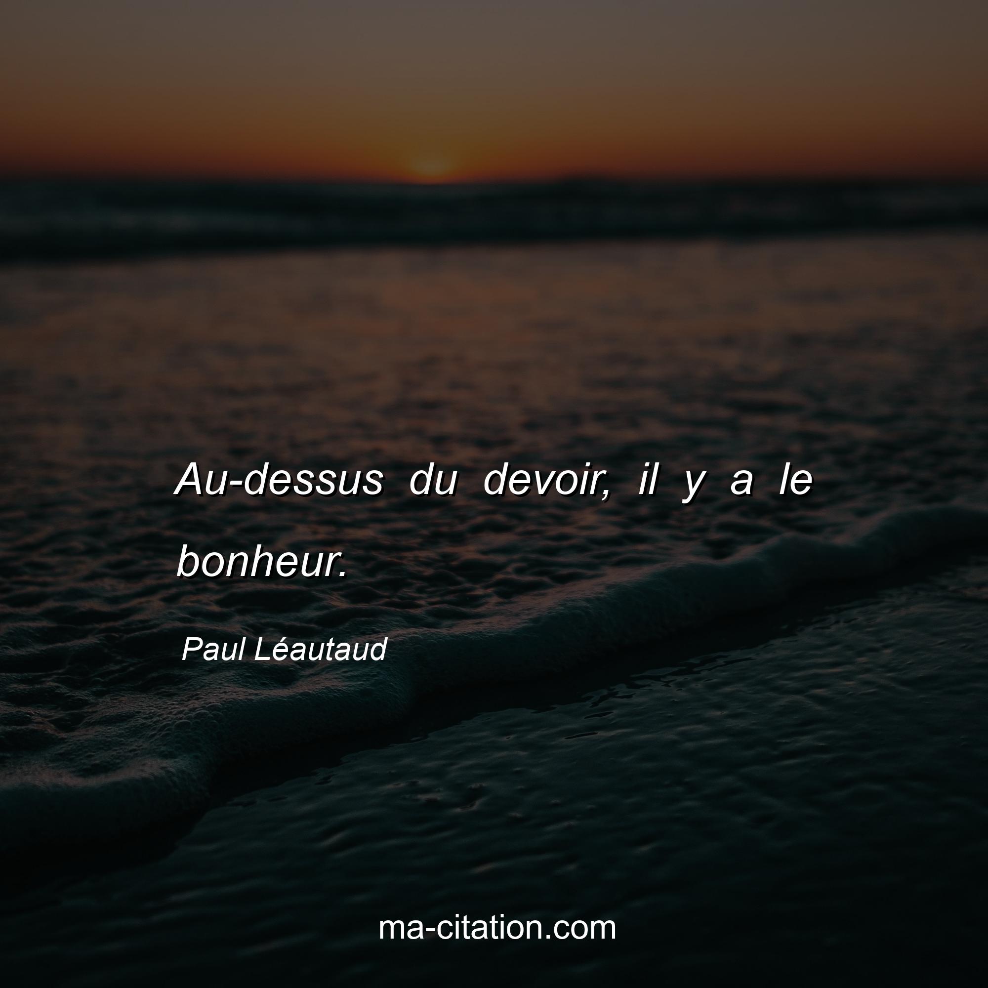 Paul Léautaud est l'auteur de la citation sur la vie "Au-dessus du devoir, il y a le bonheur.".