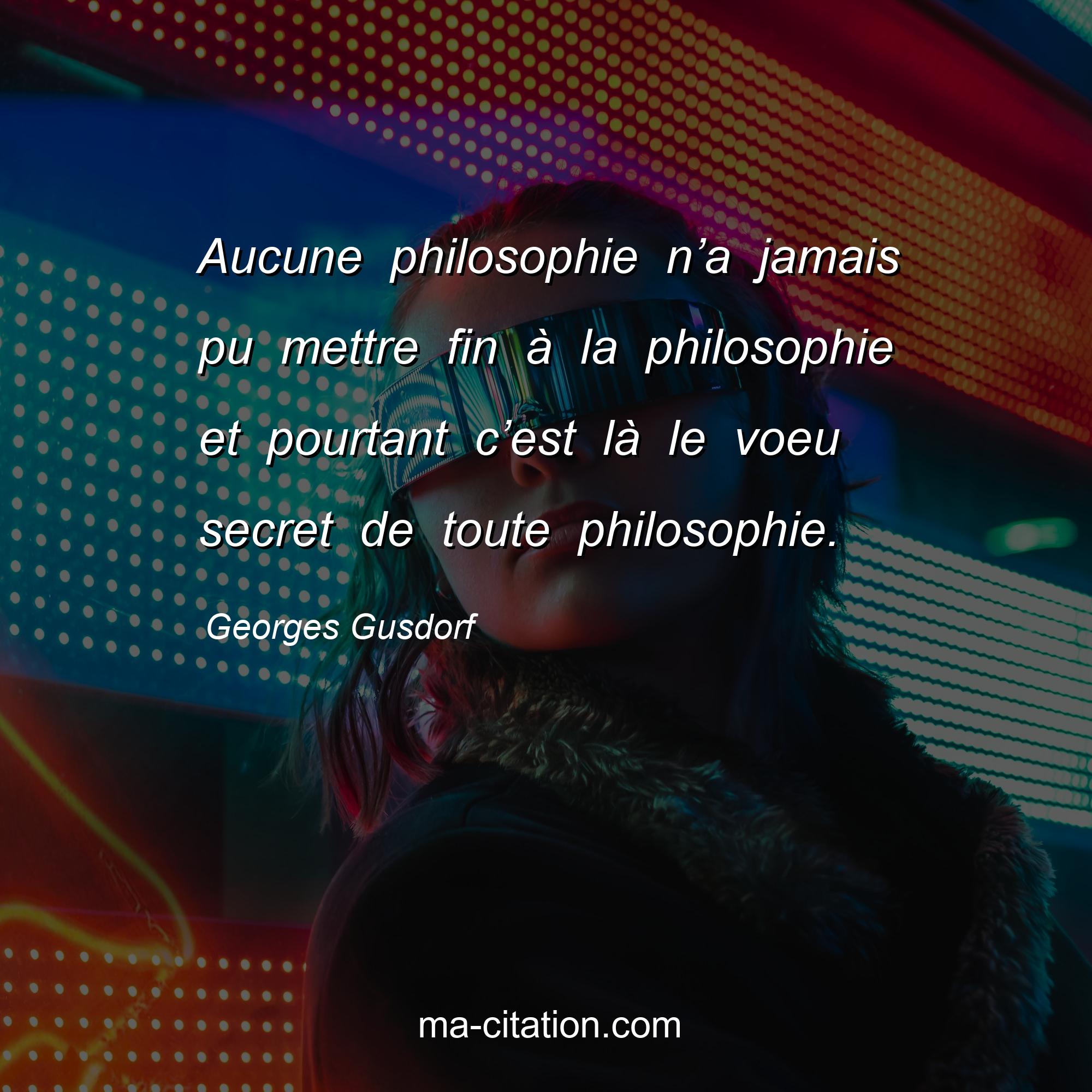 Citation sur la vie de Georges Gusdorf :Aucune philosophie n’a jamais pu mettre fin à la philosophie et pourtant c’est là le voeu secret de toute philosophie.