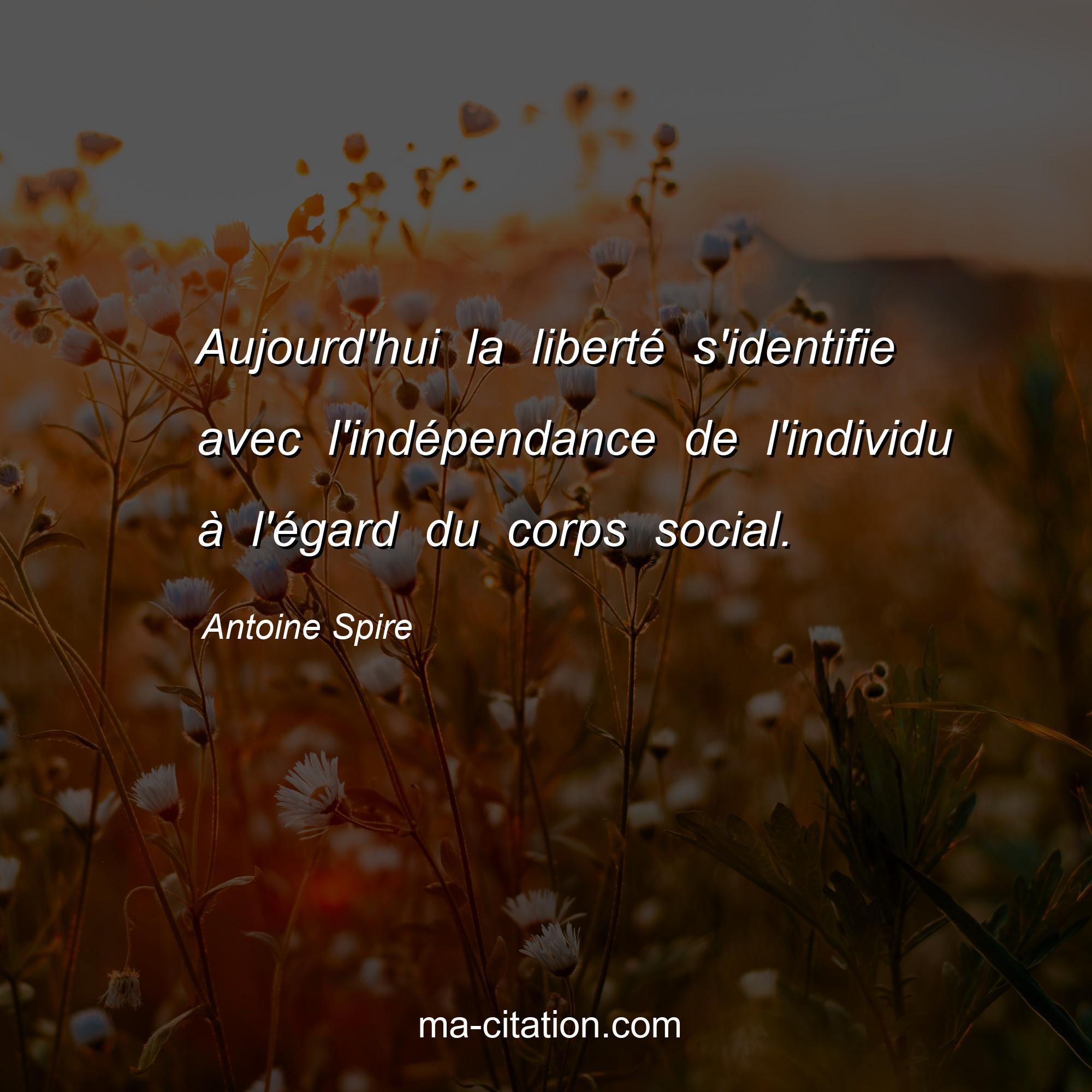 Citation sur la vie d'Antoine Spire :Aujourd'hui la liberté s'identifie avec l'indépendance de l'individu à l'égard du corps social.