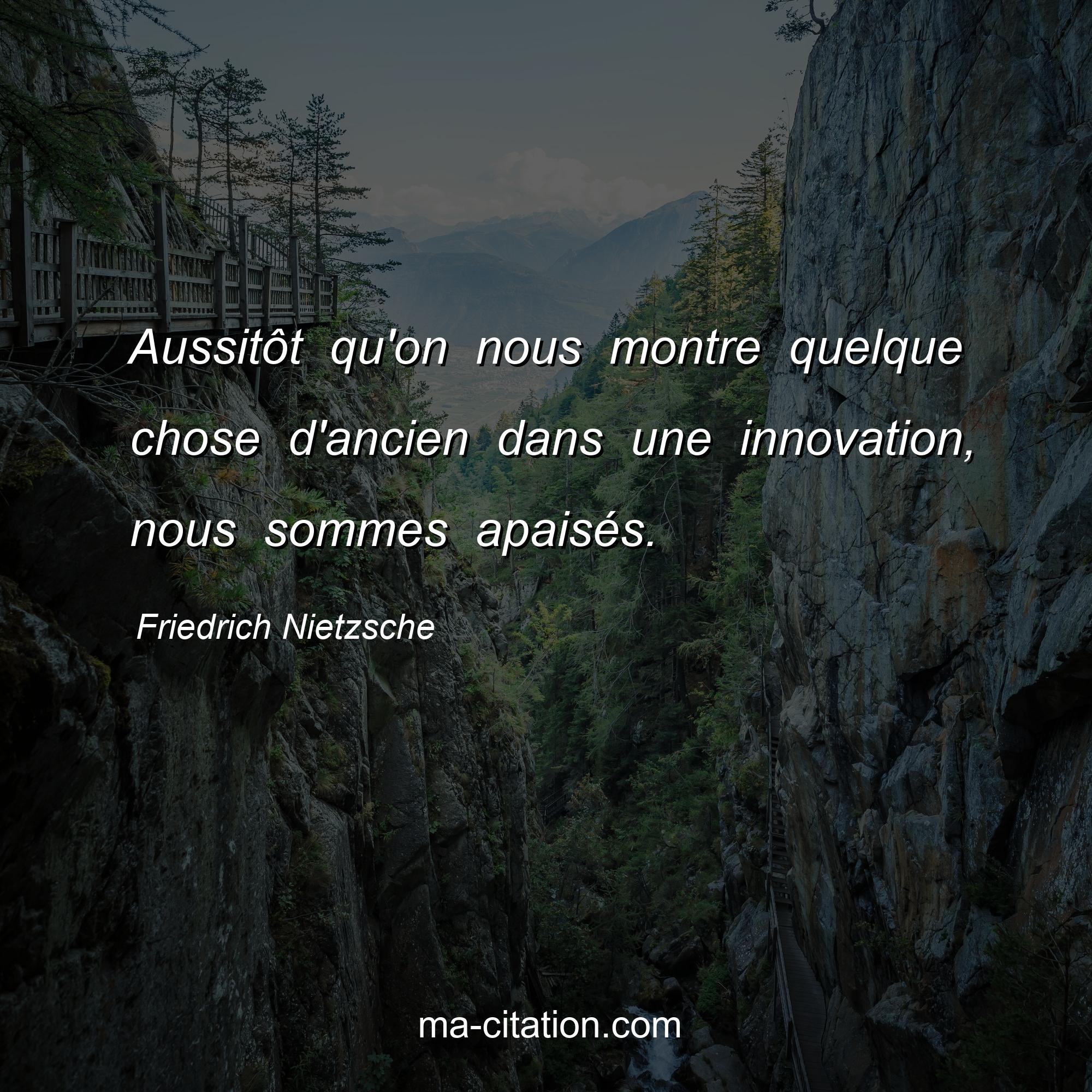 Citation sur la vie de Friedrich Nietzsche :Aussitôt qu'on nous montre quelque chose d'ancien dans une innovation, nous sommes apaisés.