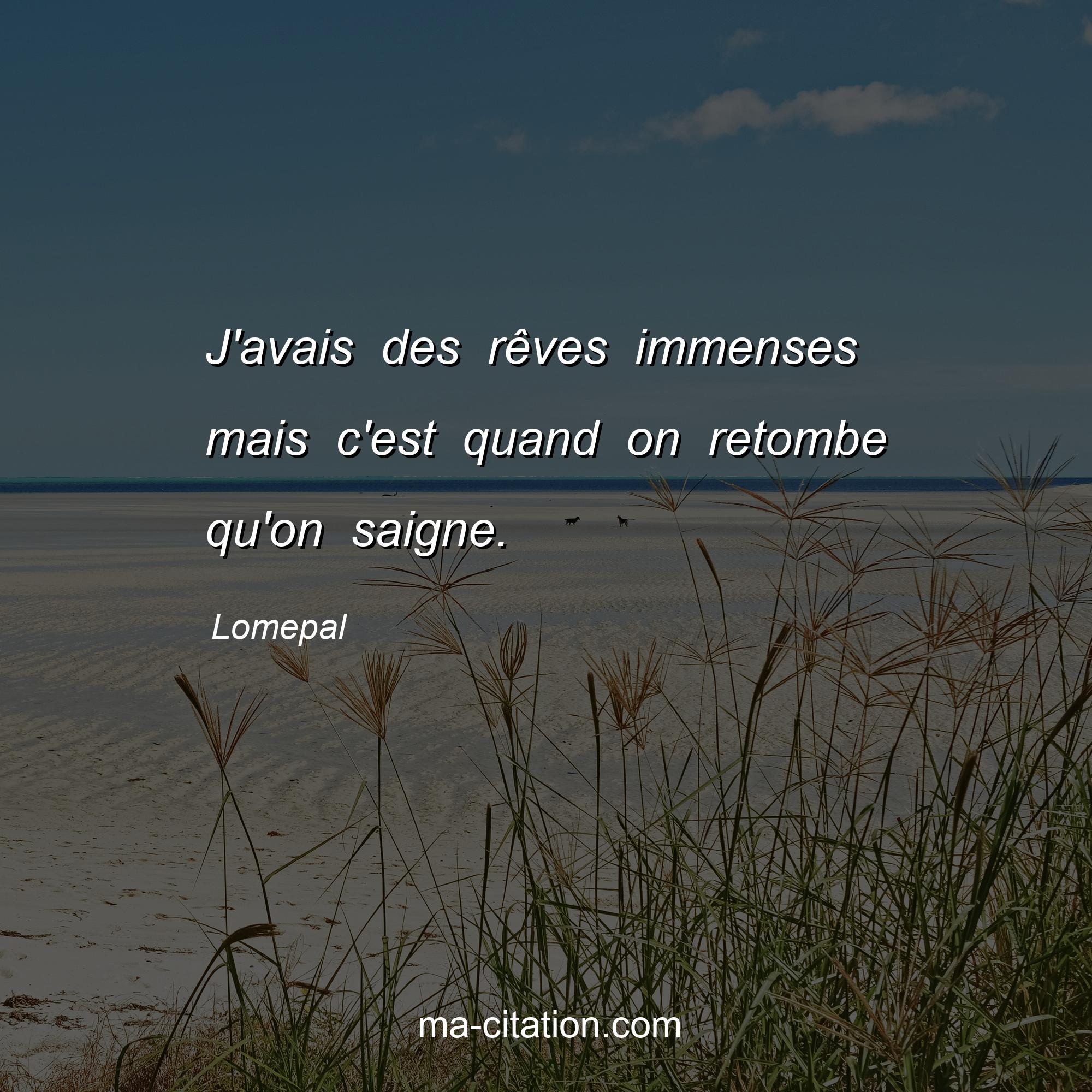 Citation sur la vie de Lomepal :J'avais des rêves immenses mais c'est quand on retombe qu'on saigne.
