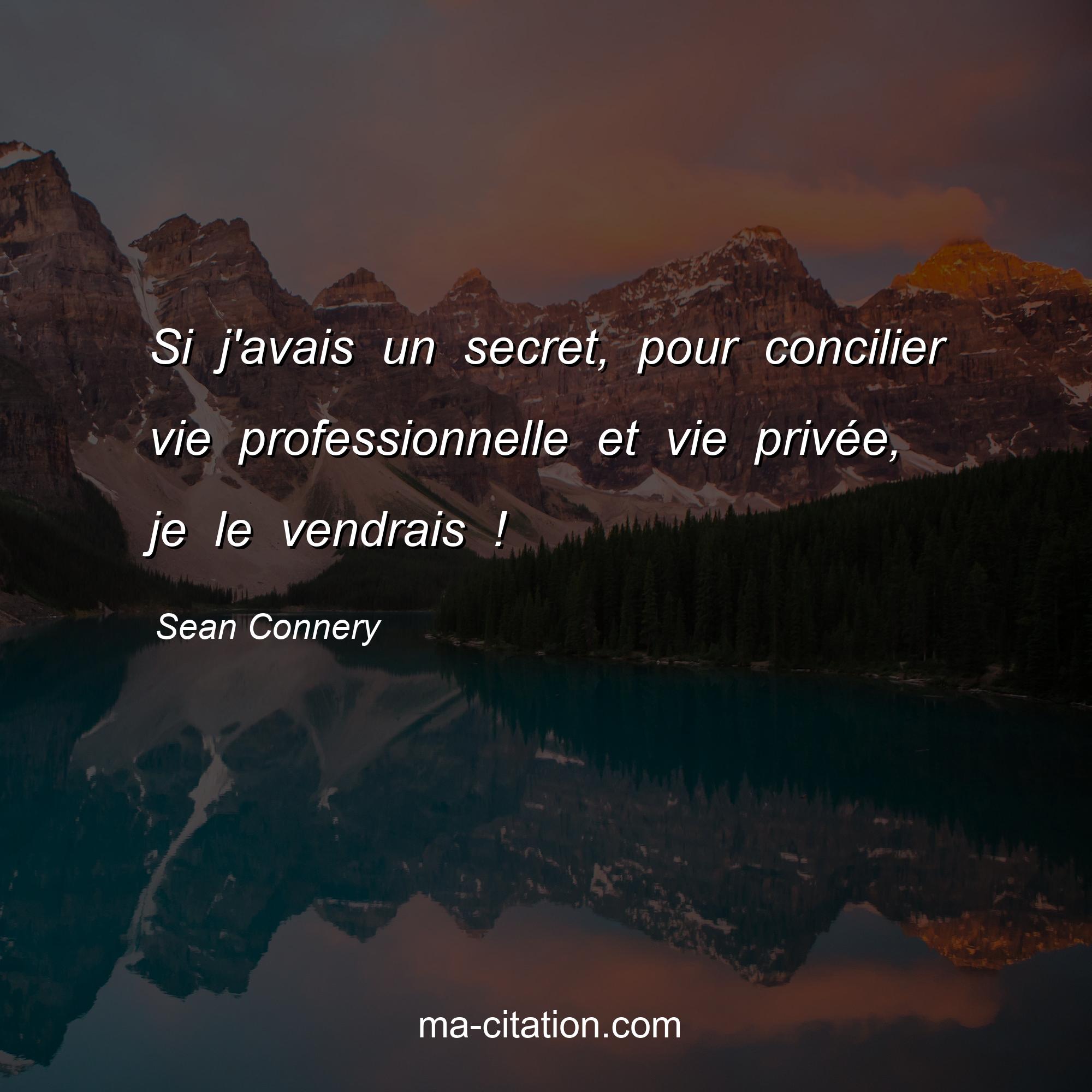 Citation sur la vie de Sean Connery :Si j'avais un secret, pour concilier vie professionnelle et vie privée, je le vendrais !