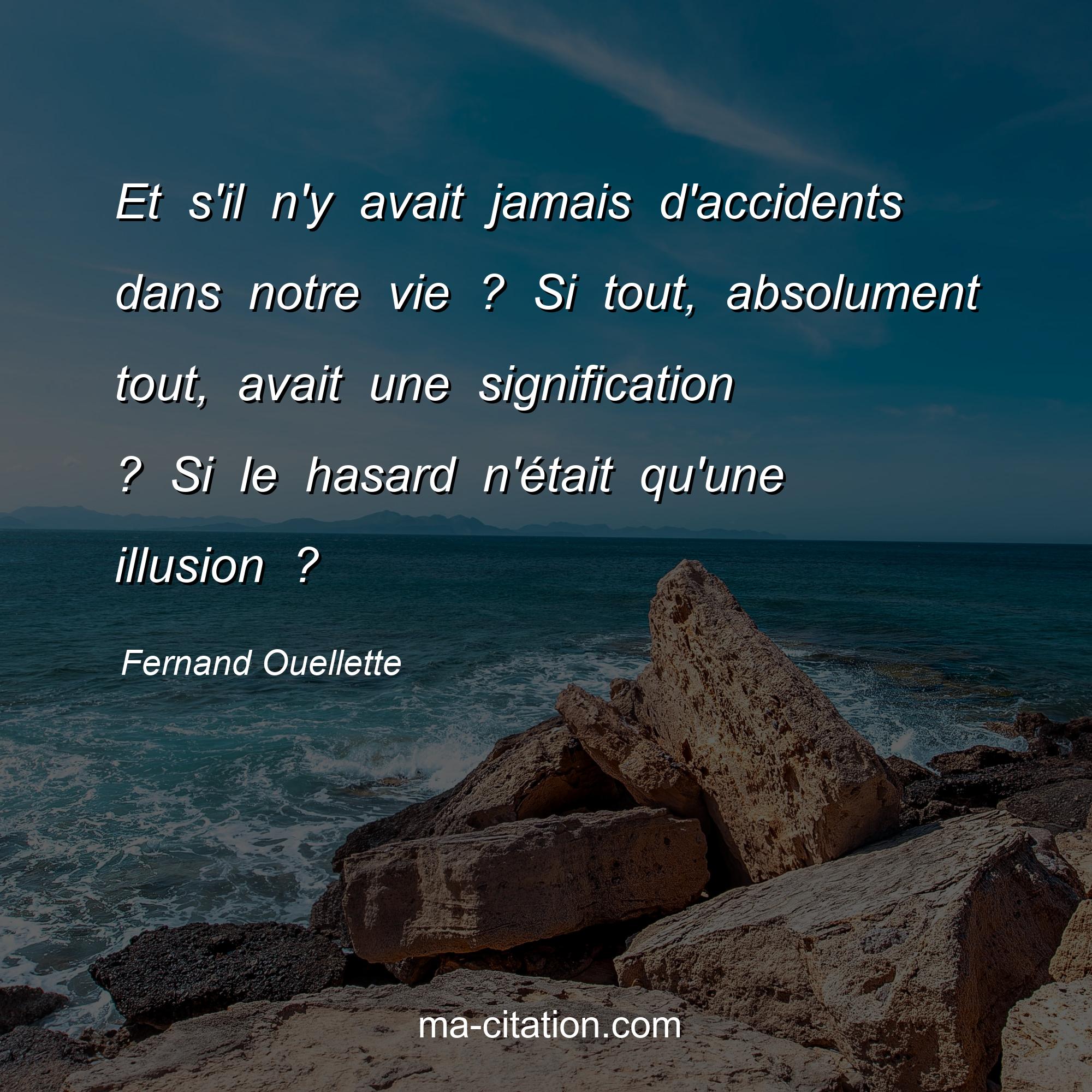 Fernand Ouellette est l'auteur de la citation sur la vie "Et s'il n'y avait jamais d'accidents dans notre vie ? Si tout, absolument tout, avait une signification ? Si le hasard n'était qu'une illusion ?".