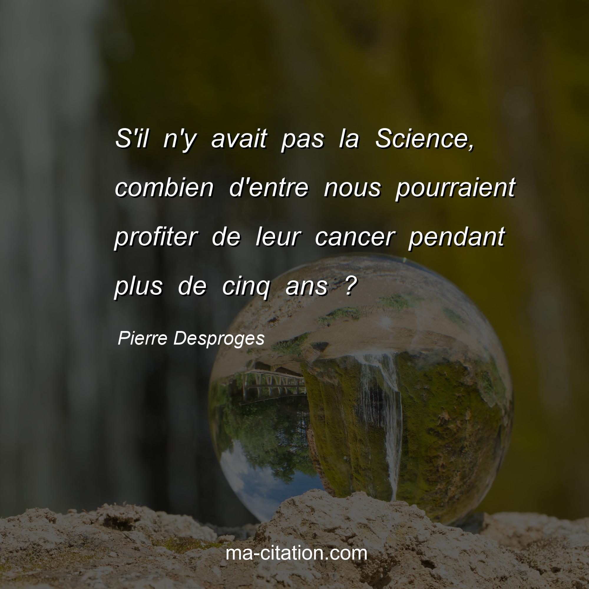 Citation sur la vie de Pierre Desproges :S'il n'y avait pas la Science, combien d'entre nous pourraient profiter de leur cancer pendant plus de cinq ans ?