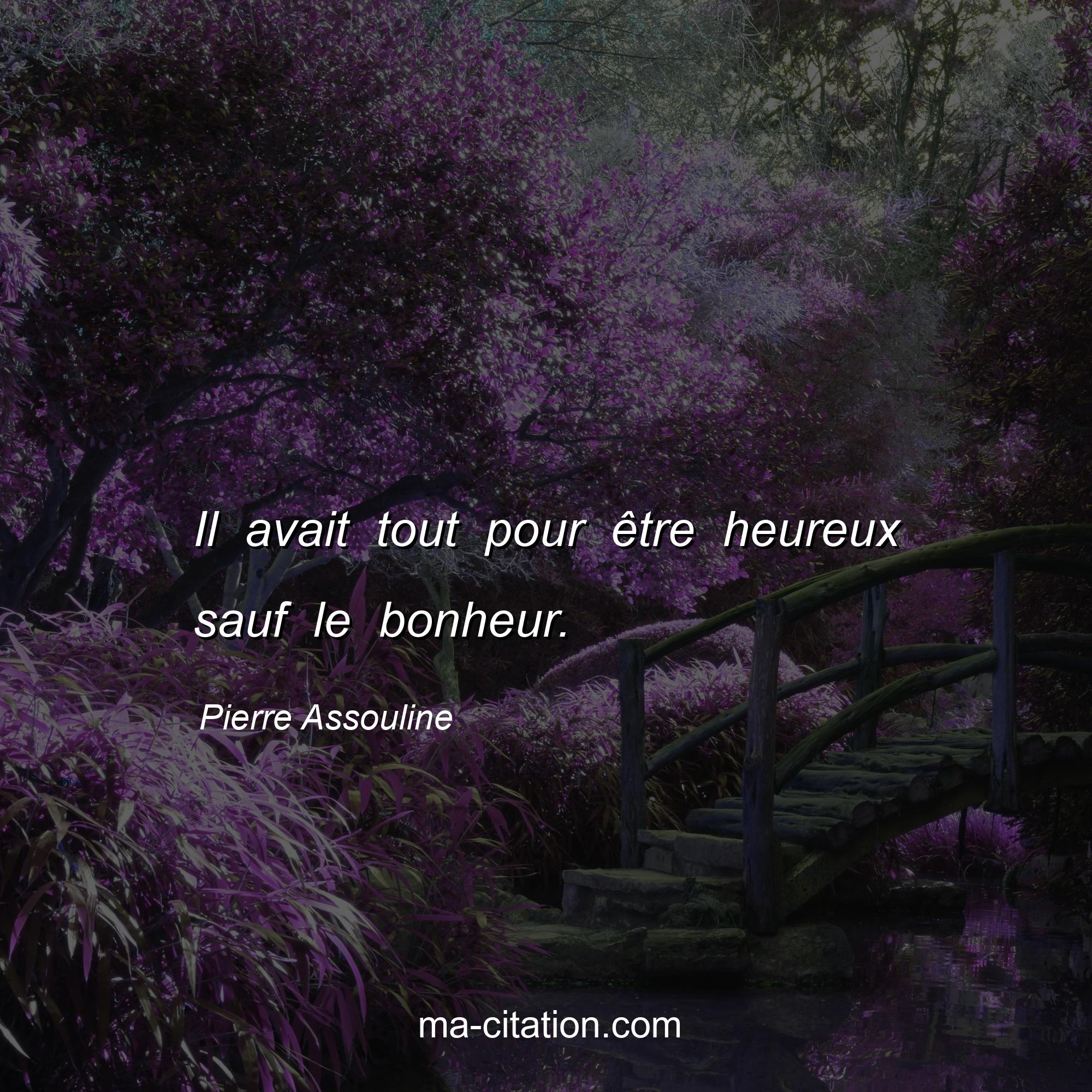 Pierre Assouline est l'auteur de la citation sur la vie "Il avait tout pour être heureux sauf le bonheur.".