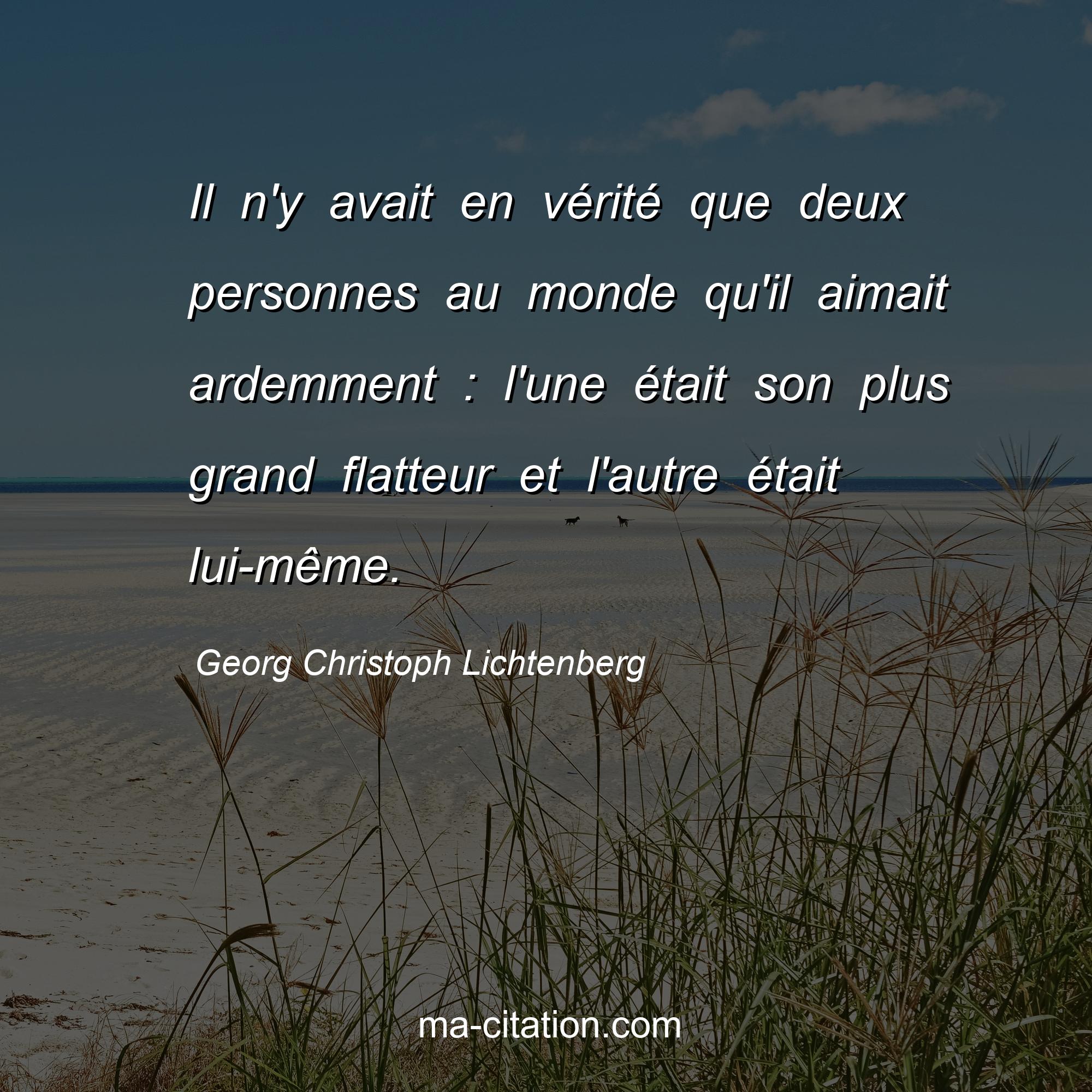 Citation sur la vie de Georg Christoph Lichtenberg :Il n'y avait en vérité que deux personnes au monde qu'il aimait ardemment : l'une était son plus grand flatteur et l'autre était lui-même.
