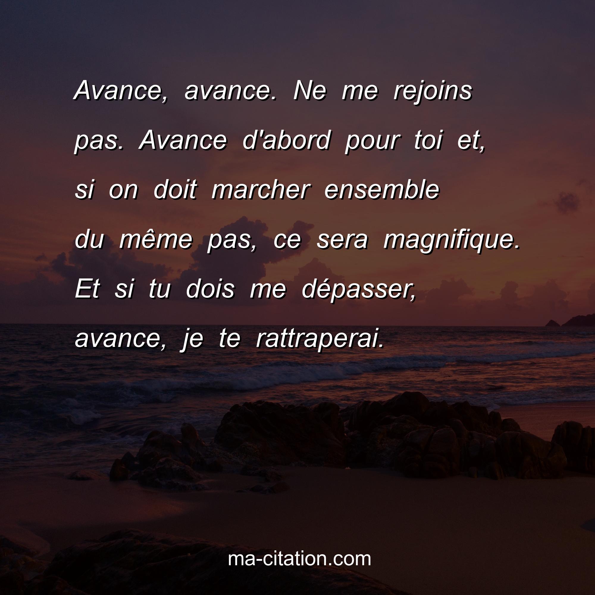 Avance, avance. Ne me rejoins pas. Avance d'abord pour toi et, si on doit marcher ensemble du même pas, ce sera magnifique. Et si tu dois me dépasser, avance, je te rattraperai.