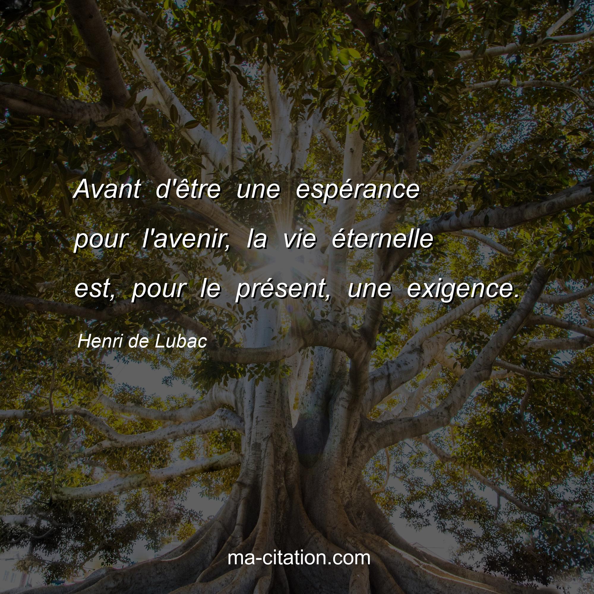 Citation sur la vie de Henri de Lubac :Avant d'être une espérance pour l'avenir, la vie éternelle est, pour le présent, une exigence.