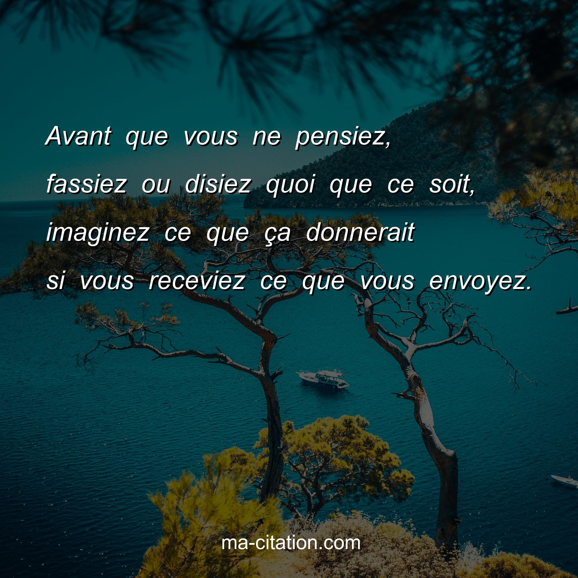 Citation sur la vie :Avant que vous ne pensiez, fassiez ou disiez quoi que ce soit, imaginez ce que ça donnerait si vous receviez ce que vous envoyez.