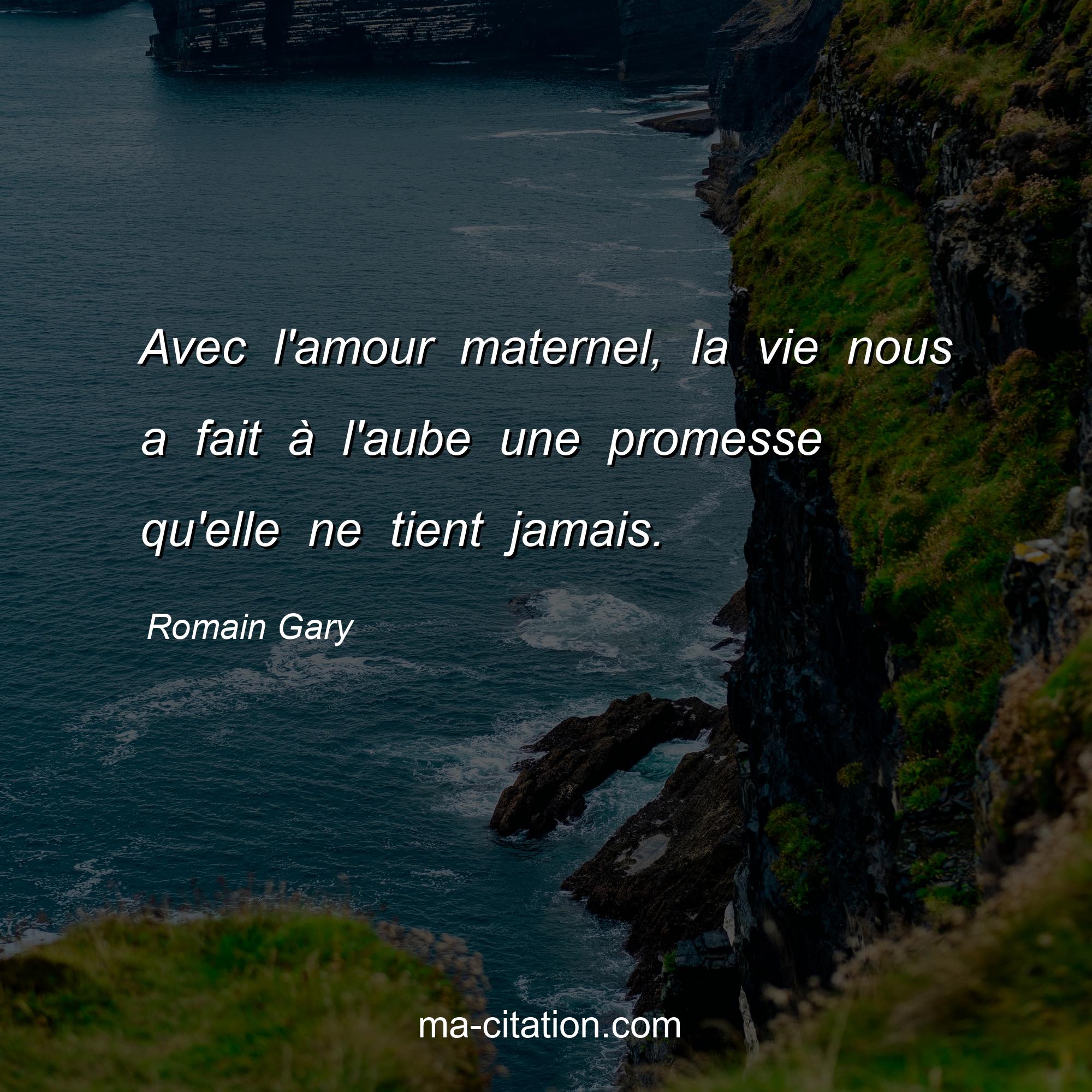 Citation sur la vie de Romain Gary :Avec l'amour maternel, la vie nous a fait à l'aube une promesse qu'elle ne tient jamais.